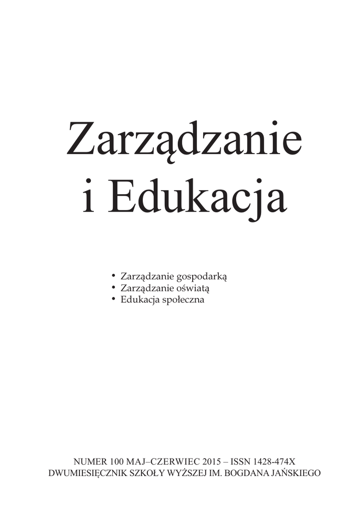 Zarządzanie i Edukacja • Zarządzanie gospodarką • Zarządzanie oświatą • Edukacja społeczna NUMER 100 MAJ–CZERWIEC 2015 – ISSN 1428-474X DWUMIESIĘCZNIK SZKOŁY WYŻSZEJ IM. BOGDANA JAŃSKIEGO 2 Adres redakcji Dwumiesiêcznik „Zarz¹dzanie i Edukacja” ul. Elektronowa 2, 03-219 Warszawa tel./fax (22) 676-94-85 e-mail: [email protected] Redaktor naczelny Dr Mariusz Szajda, Szko³a Wy¿sza im. Bogdana Janskiego Rada naukowa dwumiesiêcznika „Zarz¹dzanie i Edukacja” Dr hab. W³odzimierz Bernacki, prof. UJ; prof. dr hab. Miros³awa Czerny, UW; doc. PaedDr. Tomáš Jablonský PhD. prof. KU, v Ružomberku, prof. dr hab. Wo³odymyr Jewtuch, Ukraiñska Akademia Nauk; prof. dr hab. Romuald Joñczy, UE we Wroc³awiu; ks. dr hab. Jan Krokos, prof. UKSW; prof. dr hab. Ihor Hrabynskyi, Narodowy Uniwersytet Lwowski; Dr Marcin Kazimierczak, Uniwersytet Abat Oliba CEU, Barcelona; prof. dr. hab. Anatolij M. Ko³ot Kijowski Narodowy Uniwersytet Ekonomiczny; prof. dr hab. W³odzimierz Kurek, UJ; dr in¿. El¿bieta Kopciuszewska SWBJ w Warszawie; prof. dr hab. Bo¿ena Muchacka, UP w Krakowie; prof. dr hab. Jan Oleszczuk, UM w Lublinie; prof. dr hab. Marek Pawlak, KUL; prof. dr hab. Wanda Rusiecka, National Academy of Sciences of Belarus; dr hab. Gra¿yna Sk¹pska prof. UJ, dr hab. Dr.h.c. prof. PhDr. Vojtech Slomski, PhD. ISM Slovakia v Prešove; dr n. med. S³awomir Stawicki, Wojciech Sroczyñski, prof. UPH Redaktor tematyczny Dr Ma³gorzata Stawicka Redaktor statystyczny Dr in¿. Pawe³ Kopciuszewski Redaktor jêzykowy Dr Jerzy Ryszard Suchocki, prof. Universidad de las Américas Puebla (UDLAP) Sekretarz redakcji dr Anna Janus (tel. 606 487 769) [email protected] Korekta dr Anna Janus Wszystkie artyku³y s¹ recenzowane Recenzenci prof. dr hab. Jewgienij M. Babosow (Narodowa Akademia Nauk Bia³orusi); dr.h.c. doc. PhDr. Pavel Czarnecki (ISM Slovakia v Prešove); dr in¿. Jerzy Donarski (SWBJ w Warszawie); dr hab. £ukasz Pop³awski (UR w Krakowie); prof. dr hab. Jerzy Kosiewicz (AWF w Warszawie); dr S³awomir Stawicki (Akademia Medyczna w Warszawie); prof. dr hab. Micha³ Troszyñski (PAN); ks. prof. dr hab. Stanis³aw Urbañski (UKSW w Warszawie); dr hab. Grzegorz Wejman, prof. US Redakcja zastrzega sobie prawo dokonywania w publikowanych tekstach skrótów i zmian ISSN 1428-474X wersja referencyjna czasopisma: papierowa papierowa numer dostêpny w wersji elektronicznej na stronie www.janski.edu.pl Sk³ad, korekta, druk i oprawa: Oficyna Wydawniczo-Poligraficzna „Adam” Szanowni Państwo, wydanie setnego numeru Zarządzania i Edukacji jest dobrą okazją, by wyrazić wdzięczność Twórcom czasopisma i spojrzeć z perspektywy minionych lat na bogactwo treści prezentowanych w nim artykułów. Wiele z tych tekstów pozostanie nie tylko w historii nauki polskiej, ale zapewne także w żywej pamięci Czytelników, czyli takiej, która utrwala znaczące doświadczenia intelektualne i duchowe. Inspiracją do utworzenia dwumiesięcznika był proces realizacji szeregu zadań, wynikających z wprowadzania zmian jakościowych, związanych z intencją Założyciela Szkoły Wyższej im. Bogdana Jańskiego – Księdza Mariana Piwko: kształcenia liderów społecznych i gospodarczych na fundamencie nauki społecznej Kościoła. Stąd od pierwszego numeru czasopismo w kompleksowy sposób porusza problematykę związaną z metodami, narzędziami i technikami wspomagającymi efektywne, wieloaspektowe zarządzanie oraz szeroko ujętą problematykę nauk pedagogicznych i społecznych. Radością i satysfakcją był dla nas każdy pozytywny sygnał mówiący o potrzebie istnienia naszego czasopisma – zwłaszcza od roku 2011, kiedy udało nam się zdobyć eksponowaną pozycję na ministerialnej liście czasopism punktowanych. W tym miejscu, pragnę podziękować wszystkim osobom zaangażowanym w przygotowywanie kolejnych numerów czasopisma za ich oddanie, rzetelność, odpowiedzialność, inicjatywę oraz szerokie spektrum wiedzy. Dziękuję za dotychczasową współpracę, znakomite relacje, a przede wszystkim za okazaną życzliwość i przyjazną atmosferę naszych kontaktów. Żaden numer nie po- wstałby bez współpracy, wsparcia i pomocy wielu osób. Dlatego przede wszystkim Autorom – wyrażam słowa uznania za twórczy wkład, za sumienność, zaangażowanie i zaufanie, którym naszą redakcję obdarzyli. W sposób szczególny dziękuję za trud i konsekwencję tym, którzy z nami współpracują od wielu lat i współtworzą wizerunek naszego czasopisma, systematycznie przekazując nam swoje materiały naukowe; Recenzentom – dziękuję za podjęty trud opiniowania, cenne sugestie i wnikliwe spostrzeżenia, uwagi, rady i życzliwe wsparcie merytoryczne, umożliwiające udoskonalenie publikowanych w Zarządzaniu i Edukacji artykułów; licznym Czytelnikom – dziękuję za niesłabnące zainteresowanie, które pozwala nam wierzyć w sens tworzenia naszego dwumiesięcznika. Wyrażam również nadzieję na kontynuowanie współpracy – jesteśmy otwarci na Państwa nowe pomysły, uwagi i z chęcią przyjmiemy sugestie dotyczące tematów kolejnych numerów. Obecnym i przyszłym Autorom życzę niegasnącej, twórczej motywacji, będącej głosem wołającym dalej, ku temu co lepsze, ku rozwojowi, ku światłości. Odkrywania w sobie nowych pomysłów, nowych sił, celów, aspiracji oraz ich pomyślnego i wytrwałego realizowania. Wierzę, że nasza współpraca będzie owocna w nadchodzących latach. Redaktor Naczelny – Ks. Dr Mariusz Szajda SPIS TREŚCI Zarządzanie gospodarką Leszek Kędzierski Czas w działalności gospodarczej przedsiębiorstwa . . . . . . 7 Sabina Bartosewicz The ability to proper management of waste administration in actual polish, european and world conditions . . . . . . . . . 27 Sabina Bartosewicz Umiejętność prawidłowego zarządzania gospodarowaniem odpadami w aktualnych polskich, europejskich i światowych warunkach . . . . . . . . . . . . . . . . 