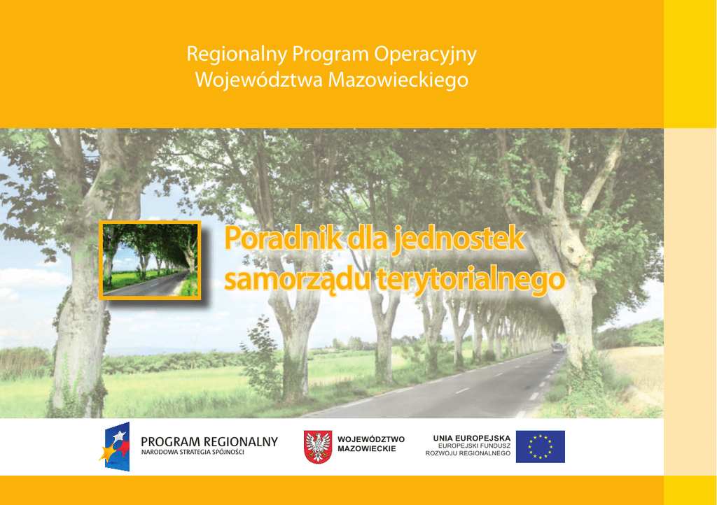 Regionalny Program Operacyjny Województwa Mazowieckiego Poradnik dla jednostek samorządu terytorialnego PROGRAM REGIONALNY NARODOWA STRATEGIA SPÓJNOŚCI WOJEWÓDZTWO MAZOWIECKIE UNIA EUROPEJSKA EUROPEJSKI FUNDUSZ ROZWOJU REGIONALNEGO Mazowiecka Jednostka Wdrażania Programów Unijnych ul. Jagiellońska 74 03-301 Warszawa e-mail: [email protected] Internet: www.mazowia.eu; Infolinia: 0 801 101 101 Egzemplarz bezpłatny ISBN 978-83-61277-14-9 Opracowanie merytoryczne: PSDB Sp. z o.o. Projekt i druk: Agencja Wydawnicza ARGI Wydatek współfinansowany przez Unię Europejską ze środków Europejskiego Funduszu Rozwoju Regionalnego oraz budżetu województwa mazowieckiego w ramach Regionalnego Programu Operacyjnego Województwa Mazowieckiego 2007 – 2013 Regionalny Program Operacyjny Województwa Mazowieckiego 2007-2013 Poradnik dla jednostek samorządu terytorialnego Stan prawny na dzień 24.02.2009 Egzemplarz bezpłatny PROGRAM REGIONALNY NARODOWA STRATEGIA SPÓJNOŚCI WOJEWÓDZTWO MAZOWIECKIE UNIA EUROPEJSKA EUROPEJSKI FUNDUSZ ROZWOJU REGIONALNEGO Niniejsza publikacja pozwoli Państwu zapoznać się z możliwościami skorzystania z dofinansowania projektów w ramach Regionalnego Programu Operacyjnego Województwa Mazowieckiego (RPO WM, Program). Znajdą w niej Państwo szczegółowy opis Działań, w ramach których projekty mogą składać jednostki samorządu terytorialnego. Jest to program współfinansowany ze środków Europejskiego Funduszu Rozwoju Regionalnego (EFRR), na realizację którego w latach 2007-2013 przeznaczono ponad 1,83 mld euro. Należy zauważyć, że jednostki samorządu terytorialnego stanowią jedną z głównych grup, które mogą korzystać ze wsparcia z funduszy europejskich i są uprawnione do ubiegania się o wsparcie w większości Działań RPO WM. W okresie programowania 2007-2013 w ramach RPO WM jednostki samorządu terytorialnego mogą ubiegać się o dofinansowanie projektów obejmujących m.in. infrastrukturę drogową, ochronę środowiska, przedsiębiorczość, edukację, turystykę, kulturę i energetykę. Wsparcie otrzymają również przedsięwzięcia związane z tworzeniem stref aktywności gospodarczej w ramach rewitalizacji obszarów miejskich i poprzemysłowych. Warto wspomnieć, że Instytucją Zarządzającą RPO dla Mazowsza jest Zarząd Województwa Mazowieckiego, natomiast Instytucją Pośredniczącą II stopnia jest Mazowiecka Jednostka Wdrażania Programów Unijnych. Zapraszamy również do odwiedzania naszej strony internetowej www.mazowia.eu, na której zamieszczane są aktualności i dokumenty dotyczące organizowanych konkursów w ramach RPO WM. Życzymy przyjemnej lektury Zespół Mazowieckiej Jednostki Wdrażania Programów Unijnych INSTRUMENTY WSPARCIA W RAMACH RPO DZIAŁANIE 1.3. Kompleksowe przygotowanie terenów pod działalność gospodarczą Celem Działania jest poprawa infrastruktury technicznej oraz instytucjonalnej poprzez wykorzystanie endogenicznego potencjału, w tym atrakcyjnego położenia regionu i rezerw terenowych dla inwestycji. Skupienie działalności gospodarczej, w tym badań i rozwoju oraz inwestycji zagranicznych, w Warszawie jest wynikiem niedostatecznego rozwoju infrastruktury inwestycyjnej poza obszarem metropolitalnym. Należy zwrócić uwagę, że subregiony bogate są w tereny nieuzbrojone w infrastrukturę techniczną oraz tereny poprzemysłowe i powojskowe, które mogą stać się dogodnym miejscem lokalizacji przedsiębiorstw. W ramach Działania przewiduje się tworzenie warunków dla prowadzenia działalności gospodarczej, w tym dostępu do atrakcyjnych terenów inwestycyjnych poprzez realizację projektów kompleksowego uzbrojenia terenu pod inwestycje. Wspierane będą projekty zakładające budowę nowych lub modernizację istniejących obiektów, w tym poprzemysłowych i powojskowych, w celu stworzenia strefy aktywności gospodarczej (z wyłączeniem przedsięwzięć wspieranych w ramach Działania 5.2. Rewitalizacja miast). Poza tym, będzie możliwość dofinansowania projektów obejmujących przystosowanie obiektów do pełnienia funkcji inkubatorów przedsiębiorczości, a także prace studyjno-koncepcyjne (dokumentacja, prace analityczne) dotyczące tworzenia terenów inwestycyjnych o powierzchni poniżej 40 ha. Budżet: 90 000 000 euro (w tym 76 500 000 euro ze środków unijnych oraz 13 500 000 euro ze środków publicznych krajowych). DZIAŁANIE 1.7. Promocja gospodarcza Celem Działania jest wypromowanie Mazowsza jako regionu przyjaznego dla przedsiębiorców i nowych technologii. Do działań promujących należy zaliczyć w szczególności udostępnianie przedsiębiorcom oraz inwestorom kompleksowej i zintegrowanej informacji przestrzennej dotyczącej sposobu zagospodarowania i przeznaczenia terenu Mazowsza, a także jego walorów gospodarczych i przyrodniczych. W ramach Działania przewiduje się wsparcie i integrację działań w zakresie marketingu i promocji gospodarczej regionu poprzez: organizację imprez oraz kampanii promocyjnych i marketingowych; uczestnictwo przedsiębiorców w targach, imprezach targowo-wystawienniczych w charakterze wystawcy; udział w branżowych misjach gospodarczych mających na celu wyszukiwanie i dobór partnerów na rynkach docelowych; przygotowanie materiałów promocyjnych; budowę, rozwój i obsługę spójnego regionalnego systemu promocji regionu, jako miejsca inwestycji, poprzez systemy informacji gospodarczej o regionie oraz zintegrowane bazy danych przestrzennych gromadzonych przez administrację publiczną w regionie (w tym: budowa i rozbudowa baz danych i systemów informacyjnych dla przedsiębiorców; budowa regionalnego systemu informacji o innowacjach; budowa systemu ofert inwestycyjnych i promocji terenów przygotowanych pod działalność gospodarczą). Budżet: 55 250 000 euro (w tym 46 962 500 euro ze środków unijnych oraz 8 287 500 euro ze środków publicznych krajowych). DZIAŁANIE 2.1. Przeciwdziałanie wykluczeniu inf