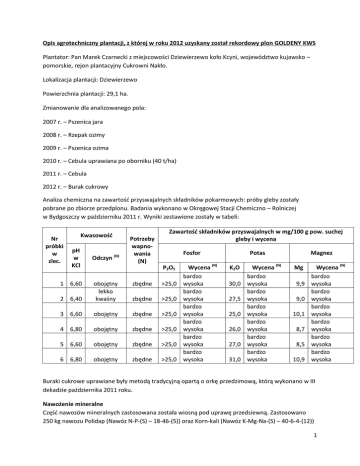 1 Opis agrotechniczny plantacji, z której w roku 2012