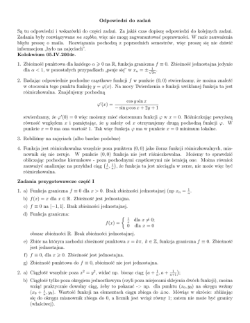 Są tu odpowiedzi i wskazówki do części zadań. Za jakiś czas dopiszę odpowiedzi do kolejnych zadań.