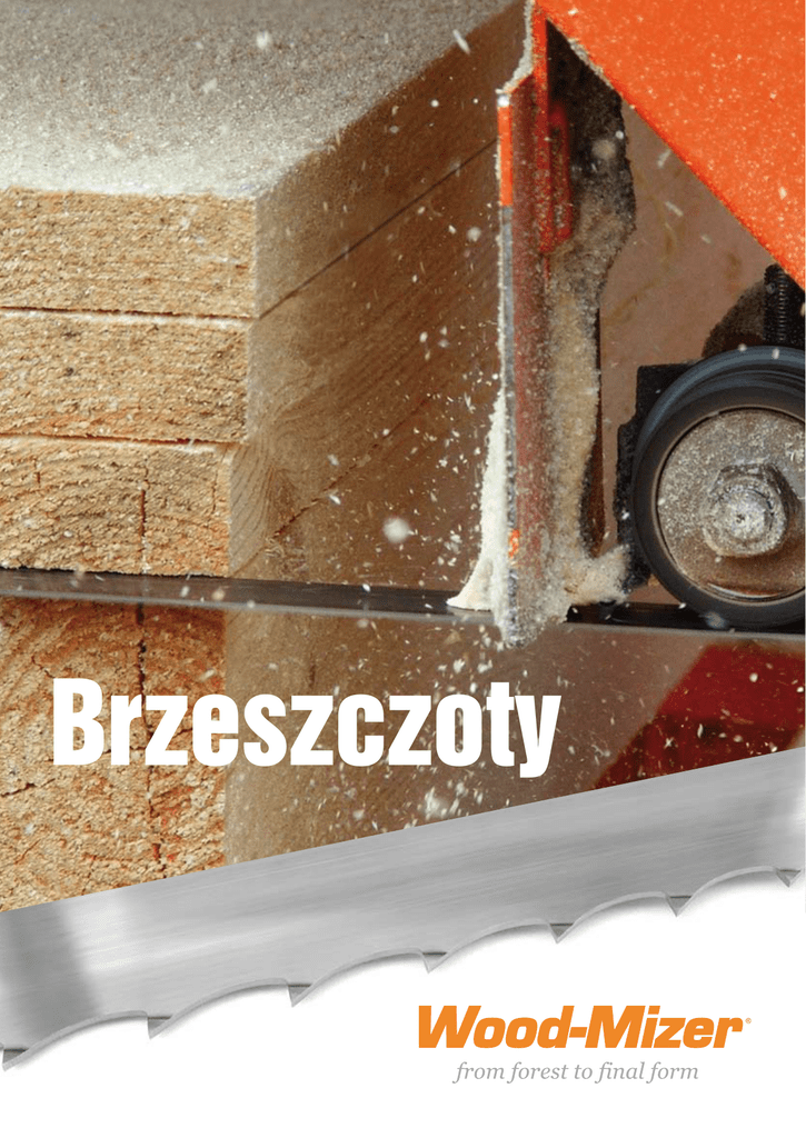 Brzeszczoty Brzeszczoty BRZESZCZOTY Przede wszystkim JAKOœæ Nied³ugo po tym jak Wood-Mizer zosta³ liderem w produkcji przewoŸnych i stacjonarnych traków, w Wood-Mizer postanowiono rozpocz¹æ w³asn¹ produkcjê brzeszczotów. Do dziœ Wood-Mizer jest jedynym producentem traków, który produkuje również brzeszczoty. Do produkcji brzeszczotów u¿ywamy najwy¿szej jakoœci stali. Ostrzenie i rozwieranie zêbów brzeszczotu odbywa siê na zautomatyzowanych urz¹dzeniach. Stosowana przez Wood-Mizer technologia zapewnia precyzjê wykonania i d³ug¹ ¿ywotnoœæ brzeszczotów marki Wood-Mizer. Oferujemy Pañstwu szeroki asortyment brzeszczotów, o ró¿nych parametrach. Produkujemy brzeszczoty ró¿nej d³ugoœci na indywidualne zamówienie klienta. Brzeszczoty Wood-Mizer produkowane i sprzedawane s¹ pod nadzorem Systemu Zarz¹dzania Jakoœci¹ zgodnego z ISO 9001:2000. Ka¿dy brzeszczot posiada wybity kod identyfikacyjny, dziêki któremu mo¿na przeœledziæ historiê produkcji. Nad prawid³owym procesem produkcyjnym czuwa system komputerowy, a w laboratorium dokonywany jest szereg badañ gwarantuj¹cych najwy¿sz¹ jakoœæ naszych produktów. 2 Rodzaj taœmy Brzeszczoty DoubleHard Brzeszczoty Wood-Mizer DoubleHard s¹ twarde i wytrzyma³e oraz odporne na wy³amywanie zêbów. Ka¿dy z¹b jest ustawiany przy pomocy urz¹dzenia sterowanego numerycznie. A ka¿dy element procesu produkcyjnego jest precyzyjnie kontrolowany przez specjalistyczny sprzêt. Brzeszczoty Professional Poszukiwaliœmy surowca do produkcji brzeszczotów, który przewy¿sza propozycjê konkurencji oraz pozwala uzyskaæ wiêksz¹ wydajnoœæ. Wybraliœmy specjalny materia³, który daje nam elastycznoœæ w po³¹czeniu z wytrzyma³oœci¹ i trwa³oœci¹ wierzcho³ka zêba. Brzeszczoty Professional pozwalaj¹ u¿ytkownikom na oszczednoœci, a tak¿e na efektywne ciêcie w ka¿dych warunkach atmosferycznych nawet po kilku ostrzeniach. Brzeszczoty SilverTip Przez wiele lat Wood-Mizer promowa³ swoj¹ s³ynn¹ technologiê brzeszczotów w¹skotaœmowych. Brzeszczoty s¹ wykorzystywane w trakach przemys³owych, np. w traku wielog³owicowym, czy w maszynach do dalszej obróbki drewna, np. w rozrzynarkach. Brzeszczoty wykorzystywane w procesie rozrzynania kantówek powinny charakteryzowaæ siê nieco innymi parametrami, ni¿ te pracuj¹ce na trakach. Przy obrzynaniu lub rozrzynaniu szerokoœæ ciêcia jest znacznie mniejsza, a deski s¹ czystsze. W odpowiedzi na takie zapotrzebowanie wyprodukowano brzeszczoty SilverTip. Aby zapewniæ maksymalnie d³ugi okres u¿ytecznoœci, do produkcji brzeszczotów u¿ywamy standardowego, bardzo elastycznego surowca. Nastêpnie stosujemy nasz unikalny proces hartowania ka¿dego zêba, co daje niezwyk³¹ ostroœæ brzeszczotu. W ten oto sposób powsta³ ostry, elastyczny i doskona³y dla maszyn do dalszej obróbki drewna – brzeszczot SilverTip. B275IH B27DIH B278IH B375IH B375IH B376IH B376IH B376IH B475IH B476IH B476IH B476IH B576IH B576IH Rodzaj taœmy B275NH B375NH B376NH Rodzaj taœmy B275IH74 B27DIH74 B278IH74 B376IH74 B376IH74 B477IH74 B376IH74 B477IH74 K¹t natarcia zêba 10/30 10/30 10/30 10/30 9/29 13/29 10/30 4/32 10/30 13/29 10/30 4/32 13/29 10/30 Gruboœæ/Szerokoœæ (w mm) 1,07 x 32 1,07 x 35 1,07 x 50 1,14 x 32 1,14 x 32 1,14 x 38 1,14 x 38 1,14 x 38 1,40 x 32 1,40 x 38 1,40 x 38 1,40 x 38 1,27 x 38 1,27 x 38 K¹t natarcia zêba 10/30 10/30 10/30 Gruboœæ/Szerokoœæ (w mm) 1,07 x 32 1,14 x 32 1,14 x 38 K¹t natarcia zêba 10/30 10/30 10/30 10/30 4/32 10/30 13/29 4/32 10/30 13/29 Gruboœæ/Szerokoœæ (w mm) 1,07 x 32 1,07 x 35 1,07 x 50 1,14 x 38 1,14 x 38 1,40 1,14 x 45 38 1,40 x 45 BRZESZCZOTY 3 PARAMETRY CHARAKTERYZUJĄCE BRZESZCZOT – Kąt natarcia BRZESZCZOTY h – Wysokość ostrza – Kąt przyłożenia Rozwarcie zębów PROFILE ZĘBÓW BRZESZCZOTU: 10/30 – brzeszczot uniwersalny, zalecany do przecierania gatunków drzew zarówno miękkich, średniotwardych, jak i twardych (brzoza, buk, klon, lipa, sosna, topola). Sposób sprzedaży: B = KARTON BRZESZCZOTÓW Grubość brzeszczotu: 2 = 1,07 mm 3 = 1,14 mm 4 = 1,40 mm 5 = 1,27 mm Podziałka zęba: 7 = 22,2 mm IH741030 • 13/29 – brzeszczot przeznaczony do cięcia drewna miękkiego o zmiennej strukturze (jodła, świerk). JAK CZYTAĆ SYMBOLE NASZYCH BRZESZCZOTÓW 5 • – Grubość brzeszczotu 7 • 9/29 – brzeszczot przeznaczony do cięcia gatunków drewna twardego, zmrożonego, o dużej gęstości (akacja, dąb, grab, jesion). s 2 4/32 – brzeszczot przeznaczony do cięcia gatunków drewna bardzo twardego i zmrożonego (akacja, buk, dąb, grab, jesion); doskonale pracuje w maszynach przemysłowych w okresie zimowym. – Podziałka ostrzy B • t -401 Szerokość brzeszczotu: 5 = 32 mm D = 35 mm 6 = 38 mm 7 = 45 mm 8 = 50 mm Dane dodatkowe: IH = ZĘBY HARTOWANE NH = ZĘBY NIEHARTOWANE 74 = MATERIAŁ SILVERTIP 432 = PROFIL ZĘBA 4°/32° 929 = PROFIL ZĘBA 9°/29° 1030 = PROFIL ZĘBA 10°/30° 1329 = PROFIL ZĘBA 13°/29° Długość brzeszczotu: WYMIAR W CENTYMETRACH Ilość brzeszczotów w opakowaniu: F = KARTON PŁASKI S = KARTON O BOKU KWADRATOWYM -F10 Oferujemy brzeszczoty o dowolnej długości i różnych profilach ! 4 8 = 8 SZTUK W KARTONIE 10 = 10 SZTUK W KARTONIE 15 = 15 SZTUK W KARTONIE 20 = 20 SZTUK W KARTONIE 30 = 30 SZTUK W KARTONIE RE-SHARP to specjalny program regeneracji brzeszczotów w zakresie ostrzenia, rozwierania zębów i ponownego zgrzewania. Dzięki naszej usłudze otrzymają Państwo doskonale wyostrzony o rozwarty brzeszczot, przygotowany do dalszej pracy. Program RE-SHARP obejmuje tylko brzeszczoty produkcji Wood-Mizer. ZALECANE PARAMETRY BRZESZCZOTÓW Drewno średniej twardości Drewno bardzo twarde lub zmrożone Kąt natarcia ostrza 12,5° – 15° 10° – 12,5° 4° – 10° Wysokość ostrza 1/4” (6,4 mm) 3/16”–1/4” (4,8 mm – 6,4 mm) 3/16” (4,8 mm) Brzeszczot 1,07 mm 0,021”– 0,023” 0,019”– 0,021” 0,016”– 0,018” Brzeszczot 1,14 mm 0,025