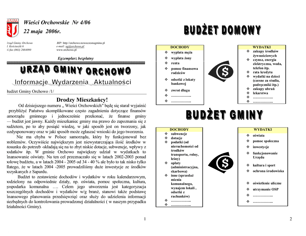 Wieści Orchowskie Nr 4/06 22 maja 2006r. Drodzy Mieszkańcy!