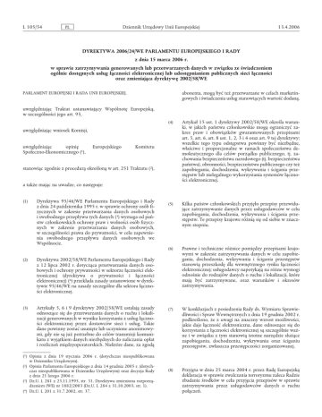 DYREKTYWA 2006/24/WE PARLAMENTU