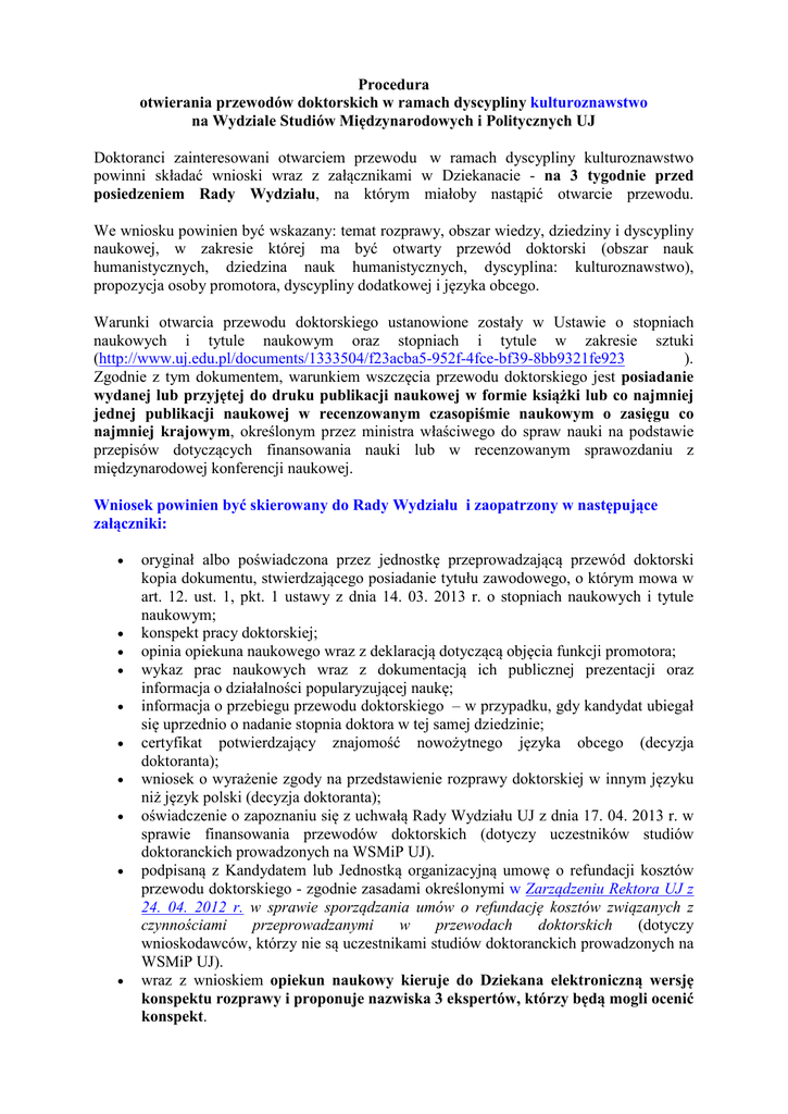 procedura otwarcia przewodu - Wydział Studiów Międzynarodowych
