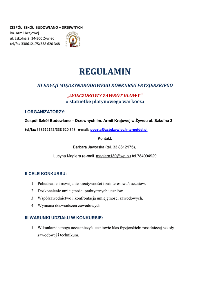 regulamin - ZSBD w Żywcu