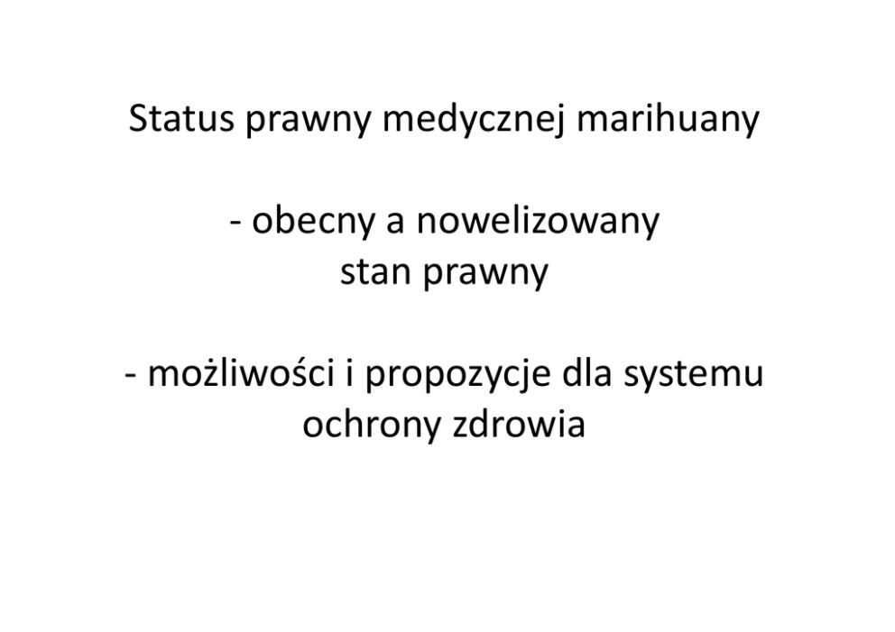 Status prawny medycznej marihuany - obecny a nowelizowany stan prawny - możliwości i propozycje dla systemu ochrony zdrowia Oświadczenie Autor oświadcza, że pozostaje w potencjalnym konflikcie interesów z powodu zatrudnienia w podmiocie zainteresowanym prowadzeniem programów leczenia kanabinoidami oraz prac badawczych ukierunkowanych na zastosowanie w praktyce. Jędrzej Sadowski, Instytut Bioinfobank Preparaty dopuszczone do obrotu Procedura dopuszczenia do obrotu (Ustawa prawo farmaceutyczne) Postępowanie (ciąg procedur) przed urzędem o prawo do wytwarzania i sprzedaży produktów przedstawianych jako lecznicze. Inspekcja Farmaceutyczna Urząd Rejestracji Produktów Leczniczych Preparaty dopuszczone do obrotu Procedura dopuszczenia do obrotu (Ustawa prawo farmaceutyczne) Urząd Rejestracji Produktów Leczniczych: • lecznicze działanie produktów, • zgodność z prawem dokumentacji Ten urząd zatwierdza, ze jest produkt leczniczy jest „evidence based”. Preparaty dopuszczone do obrotu Procedura dopuszczenia leku do obrotu (ustawa Prawo farmaceutyczne) G ł ó w n y I n s p e k t o r Fa r m a c e u t y c z n y ( G I F ) Wo j e w ó d z k i I n s p e k t o r Fa r m a c e u t y c z n y „ Po l i c j a l e ko w a ” wytwarzanie / obrót decyzje administracyjne (zezwolenia) / kontrole – ten urząd zatwierdza bezpieczeństwo procesów: • warunki wytwarzania i nadzoru (wytwórcy), •warunki obrotu (hurtownie) i sprzedaży (apteki). Preparaty dopuszczone do obrotu Zamknięty system obrotu Produktem leczniczym Rynek farmaceutyczny w UE dąży do pełnej harmonizacji • System zezwoleń • System patentów • System produkcji i obrotu Preparaty dopuszczone do obrotu Badania kliniczne Ciąg badań na ludziach Udowodnienie działania i bezpieczeństwa leku przed wprowadzeniem na rynek Preparaty dopuszczone do obrotu Podmiot odpowiedzialny przedsiębiorca, który odpowiada za produkt • skład, jakość •deklarowane działanie • obowiązki po wprowadzeniu na rynek Preparaty dopuszczone do obrotu Badania nienterwencyjne [nasz kejs, wg tabelek Maxa] Preparaty dopuszczone do obrotu Preparaty dopuszczone do obrotu Preparaty dopuszczone do obrotu „Surowce farmaceutyczne” Sytuacja nie jest jasna.. Preparaty dopuszczone do obrotu Preparaty dopuszczone do obrotu Import docelowy Preparaty dopuszczone do obrotu SATIVEX Preparaty alternatywne Bedrocan Bedrocan Bediol Bedica Standaryzowany surowiec farmaceutyczny Preparaty alternatywne Bedrocan Bedrobinol Bediol Bedica Preparaty alternatywne Marinol, Namisol, Dronabinol Tytułem sygnalizacji… Postacie nielegalne Ziele i żywica (marihuna i haszysz), wyciągi (masło,RSO) Nalewki Postacie nielegalne Żeńskie kwiaty (świeży surowiec) Postacie nielegalne Spory I – N / II - P (interpretacja MZ) Interpretacja MZ I-N – dopuszczone do stosowania w celach medycznych IV-N – dopuszczone do stosowania w celach medycznych ale stosuje się do nich wymogi kontrolne przewidziane dla IV-N Aspekt kryminalny Im gorsze społeczeństwo, tym więcej prawa. W piekle będzie już tylko prawo. Grant Gilmore „The Ages of American Law” Aspekt kryminalny Czyn zabroniony – zachowanie opisane w ustawie jako zabronione… Przestępstwo (odpowiedzialność) = czyn zabroniony + dodatkowo: Aspekt kryminalny + dodatkowo: szkodliwość społeczna – czyli oddziaływanie takiego zachowania na szersze pole niż sam sprawca Odpowiedź – na ile to konkretne zachowanie jest „karygodne” w społeczeństwie? Aspekt kryminalny - dodatkowo: Okoliczności wyłączające odpowiedzialność karną: - stan wyższej konieczności (każdy człowiek) -- eksperyment medyczny (tylko lekarz) Aspekt kryminalny – czyn zabroniony Aspekt kryminalny – czyn zabroniony „ wbrew ustawie „ = •Bez zezwolenia (wytwarzanie, obrót) •Bez recepty (posiadanie) Aspekt kryminalny – czyn zabroniony Art. 34 Środki odurzające, substancje psychotropowe lub ich preparaty może posiadać wyłącznie przedsiębiorca, jednostka organizacyjna lub osoba fizyczna uprawniona na podstawie przepisów ustawy (…). Art.41. Obrót detaliczny środkami odurzającymi, substancjami psychotropowymi i prekursorami będącymi produktami leczniczymi prowadzą apteki i punkty apteczne (…) Art.42. Preparaty zawierające środki odurzające grup I-N, II-N i III-N lub substancje psychotropowe grup II-P, III-P i IV-P, które zostały dopuszczone do obrotu jako produkty lecznicze na podstawie przepisów prawa farmaceutycznego, może po-siadać, w celach medycznych oraz do badań klinicznych, po uzyskaniu zgody wojewódzkiego inspektora farmaceutycznego, zakład opieki zdrowotnej niema-jący apteki szpitalnej, zakład leczniczy dla zwierząt oraz lekarz, lekarz dentysta lub lekarz weterynarii, prowadzący praktykę lekarską, a także inny podmiot, któ-rego działalność wymaga posiadania i stosowania tych preparatów. Art.37 10. Przywóz, wywóz, wewnątrzwspólnotowa dostawa lub wewnątrzwspólnotowe nabycie środków odurzających, substancji psychotropowych lub prekursorów kategorii 1 na własne potrzeby lecznicze może być dokonywany na podstawie dokumentów określonych w przepisach (…) 12. Minister właściwy do spraw zdrowia określi, w drodze rozporządzenia, szczegółowe warunki i tryb wydawania pozwoleń i dokumentów Aspekt kryminalny – szkodliwość społeczna „Gliniarz i prokurator” - kto ma rację w sporze o medyczną marihuanę… - i kto ma jakie prawa… Aspekt kryminalny – szkodliwość społeczna Ból Padaczka AIDS Medyczna marihuana w polskim lecznictwie Medyczna marihuana w polskim lecznictwie Przydatność badań klinicznych (podwójnie ślepa próba, placebo) Medyczna marihuana w polskim lecznictwie działalność gospodarcza w ochronie zdrowia szanse oraz problemy w dostępie do MM • podmioty lecznicze • podmioty farmaceutyczne • administracja państwowa Medyczna marihuana w polskim lecznictwie Lekarze i farmaceuci - czego boi się lekarz