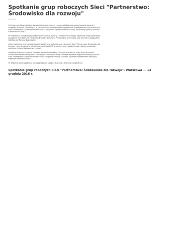 Spotkanie grup roboczych Sieci "Partnerstwo: Środowisko dla