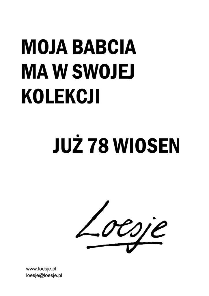 MOJA BABCIA MA W SWOJEJ KOLEKCJI JUŻ 78 WIOSEN www.loesje.pl [email protected]