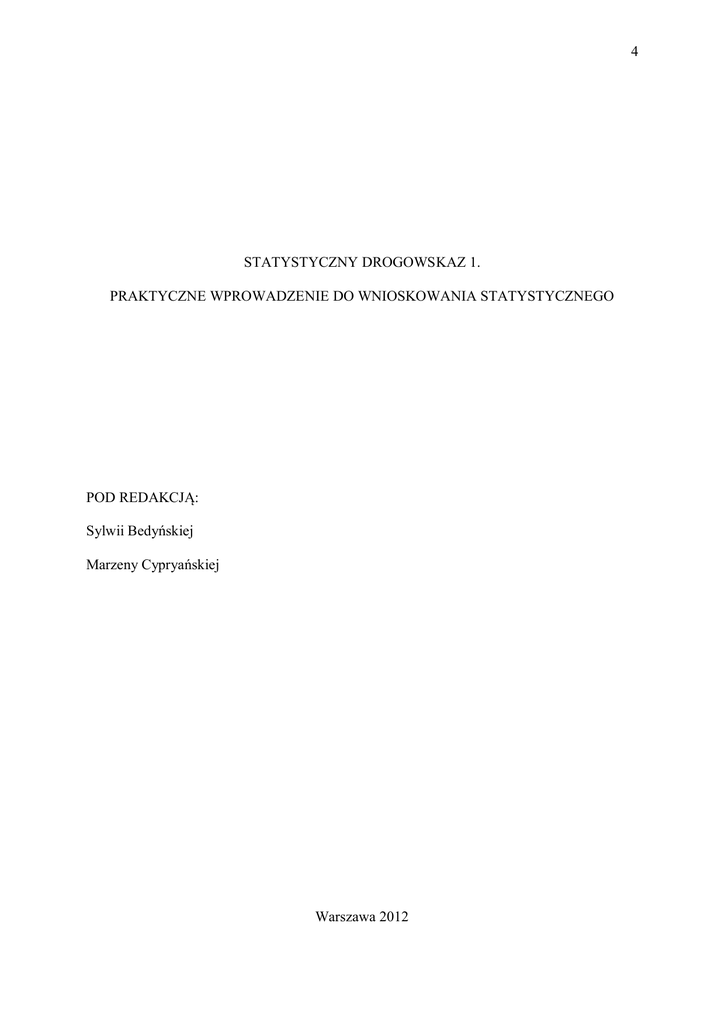 4 STATYSTYCZNY DROGOWSKAZ 1. PRAKTYCZNE WPROWADZENIE DO WNIOSKOWANIA STATYSTYCZNEGO POD REDAKCJĄ: Sylwii Bedyńskiej Marzeny Cypryańskiej Warszawa 2012 5 Spis treści CZĘŚĆ I – Przygotowanie danych do analizy statystycznej Rozdział 1. Jak badać zjawiska psychologiczne? Sylwia Bedyńska, Aneta Brzezicka, Marzena Cypryańska ………............................................11 Rozdział 2. Wprowadzanie danych i podstawy pracy z programem IBM SPSS STATISTICS. Barbara Kossakowska, Sylwia Bedyńska……………………………………. …………………43 Rozdział 3. Przyglądanie się zmiennym. Statystyki opisowe i standaryzacja. Rafał Albiński, Adrian Elczewski…………………………………………………………………85 Rozdział 4 Standardowe metody tworzenia wskaźników. Michał Ścibor-Rylski …….…………. ……………………..……………………………..119 CZĘŚĆ II - Wprowadzenie do wnioskowania statystycznego - testy różnic Rozdział 5 Wnioskowanie statystyczne na danych jakościowych. Testy chi kwadrat. Piotr Rycielski, Aneta Brzezicka……………………………………………………………144 Rozdział 6 Testy t- Studenta i ich nieparametryczne odpowiedniki. Marzena Cypryańska, Sylwia Bedyńska……………………………………………………170 CZĘŚĆ III - Wprowadzenie do wnioskowania statystycznego - testy związku Rozdział 7 Miary związku między zmiennymi. Współczynniki korelacji. Michał Ścibor-Rylski……………………………………………………..………………….212 Rozdział 8 Analiza regresji Izabela Krejtz, Krzysztof Krejtz, Agata Kopacz....................................................................243 Rozdział 9 Analiza czynnikowa i rzetelności skali. Zaawansowane metody tworzenia wskaźników Sylwia Bedyńska, Marzena Cypryańska…………..………………………………………..267 Literatura cytowana ………………………… ..................................................................311 6 Przedmowa To już drugie wydanie Statystycznego Drogowskazu! Rozwój programu IBM SPSS Statistics, zmiana nazwy, wyglądu i sposobu działania tego programu statystycznego skłoniły nas do rozważenia wznowienia Statycznego Drogowskazu oraz istotnych zmian zarówno w jego treści jak i formie. Pierwsze wydanie Statystycznego Drogowskazu przygotowane zostało na wersji 14.0 programu SPSS – do dzisiaj minęło już 6 edycji programu i obecnie mamy wersję 20.0. Proponujemy zatem szereg zmian, które mamy nadzieję ułatwią Czytelnikom nie tylko korzystanie w programu IBM SPSS Statistics, ale także zrozumienie zagadnień statystycznych i odniesienie ich do własnego problemu badawczego. Zmiany, które proponujemy należą zarówno do tych z gatunku ewolucyjnych, jak i rewolucyjnych. Zmiana rewolucyjna polega na tym, że dzielimy treść podręcznika na trzy tomy: w pierwszym prezentujemy podstawowe operacje związane z obsługą programu IBM SPSS Statistics, przygotowania danych do analizy oraz proste testy różnic i związku. To książka, która opisuje podstawy i stanowi punkt wyjścia do zrozumienia większości istniejących obecnie testów i technik statystycznych. W drugim tomie zagłębiamy się w różne schematy najbardziej popularnego testu różnic, czyli analizy wariancji. Prezentujemy te, które obejmują porównanie grup (schematy międzygrupowe) oraz te, które porównują wyniki zebrane w powtarzanych pomiarach. Trzeci tom w całości jest dedykowany różnym formom metod regresyjnych i krótkiemu wprowadzeniu do modelowania równań strukturalnych. Oczywiście, tak jak w poprzedniej książce, nie opisujemy wszystkich dostępnych metod statystycznych należących do danej grupy, a jedynie te najczęściej używane i dostępne w pakiecie statystycznym IBM SPSS Statistics. To, oczywiście, nie wyczerpuje wachlarza metod opracowanych przez statystyków i wykorzystywanych przez badaczy. Możemy przyjąć, że niniejszy podręcznik stanowi dobry punkt wyjścia do samodzielnego poznawania bardziej zaawansowanych technik statystycznych. Co można znaleźć w pierwszym tomie? Uporządkowanie treści zostało podporządkowane łączącej autorów zasadzie, by o trudnych rzeczach mówić na tyle prosto, by zagadnienie było zrozumiałe. Łączy nas także podejście do analiz statystycznych, które najlepiej wyraził jeden z najsłynniejszych statystyków, twórca analizy wariancji, Roland Fisher, twierdząc, że prośba o konsultację statystyczną dopiero po zebraniu danych przypomina raczej sekcję zwłok niż poradę lekarską. Czujemy się też jego spadkobiercami w 7 tym sensie, że tak jak on szukamy możliwości praktycznego wykorzystania statystyki w badaniach, a nie ich matematycznego piękna (choć przed drugim wcale się nie wzbraniamy). Książka została więc zorganizowana w taki sposób, aby wspierać badacza zarówno podczas planowania badania, jak i wstępnego opracowania jego wyników oraz przy ich późniejszej analizie. Autorzy prezentowanej pozycji od wielu lat starają się oswoić „statystycznego potwora” podczas zajęć ze studentami, czego efektem jest powstanie podręcznika – przewodnika bez nadmiernej liczby wzorów i teoretycznych rozważań, natomiast z możliwie wieloma praktycznymi wskazówkami oraz przykładami zastosowań każdej opisywanej tu techniki. Staraliśmy się, aby Statystyczny drogowskaz 1 łączył w sobie trzy rodzaje wskazówek: metodologiczne (jak zrobić badanie, które odpowie na nurtujące mnie pytanie), statystyczne (którego testu użyć) oraz praktyczne (jak wykonać obliczenia w programie statystycznym i potem prawidłowo je opisać). Niniejsza książka skierowana jest do szerokiego grona odbiorców: począwszy od studentów pierwszych lat psychologii i kierunków jej pokrewnych, zaczynających swe zmagania ze statystyką, poprzez magistrantów, a skończywszy na dok