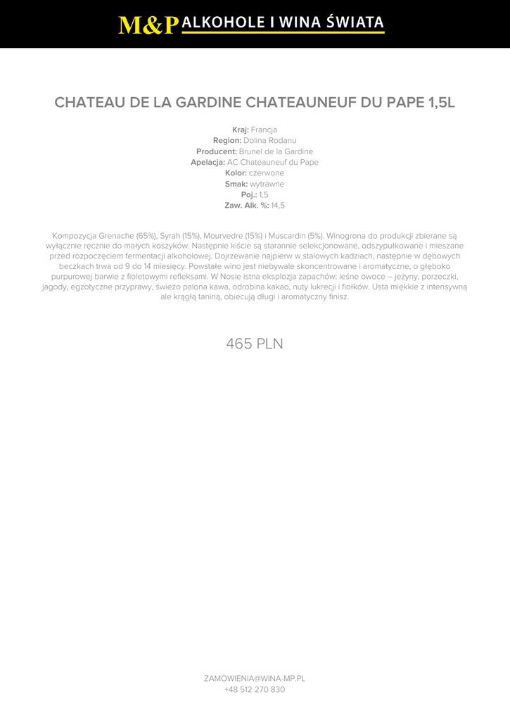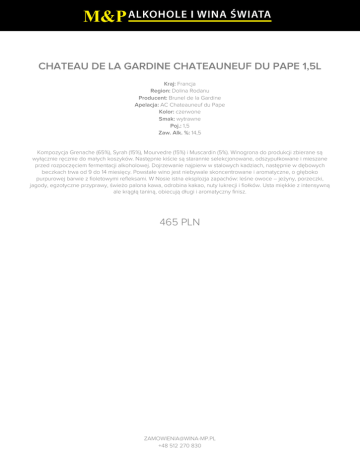 CHATEAU DE LA GARDINE CHATEAUNEUF DU PAPE 1,5L 465 PLN