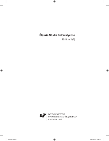 Śląskie Studia Polonistyczne 2015, nr 2 (7) 5 SSP-Vol-7.indb 1 2016-07-07 23:00:57 Rada Naukowa Przewodniczący: Marek Piechota (Uniwersytet Śląski) Edward Balcerzan (Uniwersytet im. Adama Mickiewicza w Poznaniu) Małgorzata Czermińska (Uniwersytet Gdański) Maria Delaperrière (INALCO Paris) Michał Głowiński (IBL PAN) Jens Herlth (Universität Freiburg) Marian Kisiel (Uniwersytet Śląski) Krzysztof Kłosiński (Uniwersytet Śląski) Erazm Kuźma (Uniwersytet Szczeciński) Jarosław Ławski (Uniwersytet w Białymstoku) Jan Malicki (Uniwersytet Śląski) Aleksander Nawarecki (Uniwersytet Śląski) Leonard Neuger (Stockholms universitet) Ryszard Nycz (Uniwersytet Jagielloński) Józef Olejniczak (Uniwersytet Śląski) Jerzy Paszek (Uniwersytet Śląski) Dariusz Pawelec (Uniwersytet Śląski) François Rosset (Université de Lausanne) Małgorzata Smorąg‑Goldberg (Université Paris IV‑Sorbonne) Jerzy Smulski (Uniwersytet Mikołaja Kopernika w Toruniu) Marek Tomaszewski (INALCO Paris) Danuta Ulicka (Uniwersytet Warszawski) Piotr Wilczek (Uniwersytet Warszawski) Zespół Redakcyjny Maria Barłowska, Adam Dziadek (redaktor naczelny), Mariusz Jochemczyk, Anna Kałuża (sekretarz redakcji), Ryszard Koziołek, Grzegorz Olszański, Danuta Opacka‑Walasek, Krzysztof Uniłowski (zastępca redaktora naczelnego) Redaktorzy materiałów w części Ojciec, nasz bliźni Krzysztof Kłosiński, Dawid Matuszek Nazwiska recenzentów publikowane są raz do roku na stronie interneto‑ wej czasopisma Adres Redakcji plac Sejmu Śląskiego 1, 40-032 Katowice Redakcja nie odsyła materiałów niezamówionych Oficjalna strona internetowa czasopisma: www.slaskiestudiapolonistyczne.us.edu.pl Publikacja jest dostępna w wersji internetowej: Central and Eastern European Online Library www .c eeol.com SSP-Vol-7.indb 2 2016-07-07 23:00:58 Spis treści Rozprawy i artykuły Ojciec, nasz bliźni 7 13 25 45 59 77 99 131 155 165 179 Andrzej Leder Wina bez prawa. Struktura nowej iluzji Ryszard Koziołek Sienkiewicza świat bez ojców Przemysław Tacik Ojciec po śmierci ojca – (post)lacanowski ateizm w spojrzeniu z Odradka Dawid Matuszek Gorszyciel. Schulz i zawodowi czytelnicy Marta Baron-Milian Prawość Ojca. Aleksandra Wata zmagania z testamentem Wojciech Śmieja Między mężczyznami. Proza Wilhelma Macha – socrealizm psychoanalizą podszyty Piotr Bogalecki Takie buty? Commedia della lingua Tymoteusza Karpowicza Bartosz Wójcik Żałoba i rewolucja. Refleksje heglowskie Piotr Graczyk Amicitia a tyranobójstwo Maciej A. Sosnowski Porażka Ojca Didier Eribon Ucieczka od psychoanalizy (przełożył Wojciech Śmieja) Prezentacje Edward Pasewicz 193 207 217 221 Jakub Skurtys Sonata na cytozynę i trzy fałszywe białka. O mitobiologicznych szyfrach Edwarda Pasewicza „Jak najwięcej przestrzeni”. Z Edwardem Pasewiczem rozmawia Marek Olszewski Edward Pasewicz Wiersze Adam Dziadek Słuchanie jako doświadczenie somatyczne. O wierszach Edwarda Pasewicza Recenzje i omówienia 235 241 249 3 SSP-Vol-7.indb 3 Andrzej Skrendo Tekst ciała, ciało tekstu [dot. A. Dziadek: Projekt krytyki somatycznej] Marian Kisiel Herbert i świat Rzymu [dot. J.M. Ruszar: Słońce republiki] Elżbieta Dutka „Poezja metafizycznych pytań” [dot. M. Flakowicz-Szczyrba: Dowód na istnienie. Poezja Julii Hartwig wobec egzystencji i sztuki] Spis treści 2016-07-07 23:00:58 259 269 Wojciech Rusinek Po stronie życia, przeciw melancholii [dot. M. Bieńczyk: Jabłko Olgi, stopy Dawida] Marek Mikołajec Nie takie Wieloryby i ćmy straszne (jak je malują) [dot. S. Twardoch: Wieloryby i ćmy] Varia 285 Magdalena Piotrowska-Grot Tradycja (nie)śmiertelna. Kilka słów o poetyckich „obsesjach” Wojciecha Wencla Kronika 307 311 SSP-Vol-7.indb 4 Czytanie poetów polskiego oświecenia. Sprawozdanie z seminarium naukowego Nad tekstami Stanisława Trembeckiego (18–22 maja 2015) (Małgorzata Marcinkowska) Miejsce, pamięć, tożsamość. Sprawozdanie z V Transdyscyplinarnej Szkoły Letniej dla Doktorantów (6–10 lipca 2015) (Marzena Boniecka) 2016-07-07 23:00:58 Na okładce Edward Pasewicz (fot. Ewa Łowżył) Redakcja Małgorzata Nadwadowska, Sandra Trela (Towarzystwo Literackie im. Teodora Parnickiego) Projekt okładki, projekt typograficzny i łamanie Tomasz Gut Korekta Magdalena Starzyk ISSN 2084-0772 (wersja drukowana) ISSN 2353-0928 (wersja elektroniczna) Copyright © 2015 by Wydawnictwo Uniwersytetu Śląskiego Wszelkie prawa zastrzeżone Wydawca Wydawnictwo Uniwersytetu Śląskiego ul. Bankowa 12B, 40-007 Katowice www.wydawnictwo.us.edu.pl e-mail: [email protected] Wydanie I. Nakład publikacji: 100 + 50 egz. Liczba arkuszy drukarskich: 19,75. Liczba arkuszy wydawniczych: 25,0. Cena 30 zł (+ VAT ). Publikację wydrukowano na papierze Sora Matt Plus 90 g / m2, dostępnym w ofercie firmy Panta. Do składu użyto kroju pisma Skolar (autorstwa Davida Březiny) oraz kroju Switzer EFN z oferty firmy Fonty.pl. Druk i oprawa: „TOTEM.COM.PL Sp. z o.o.” Sp.K., ul. Jacewska 89, 88-100 Inowrocław. SSP-Vol-7.indb 316 2016-07-07 23:01:40