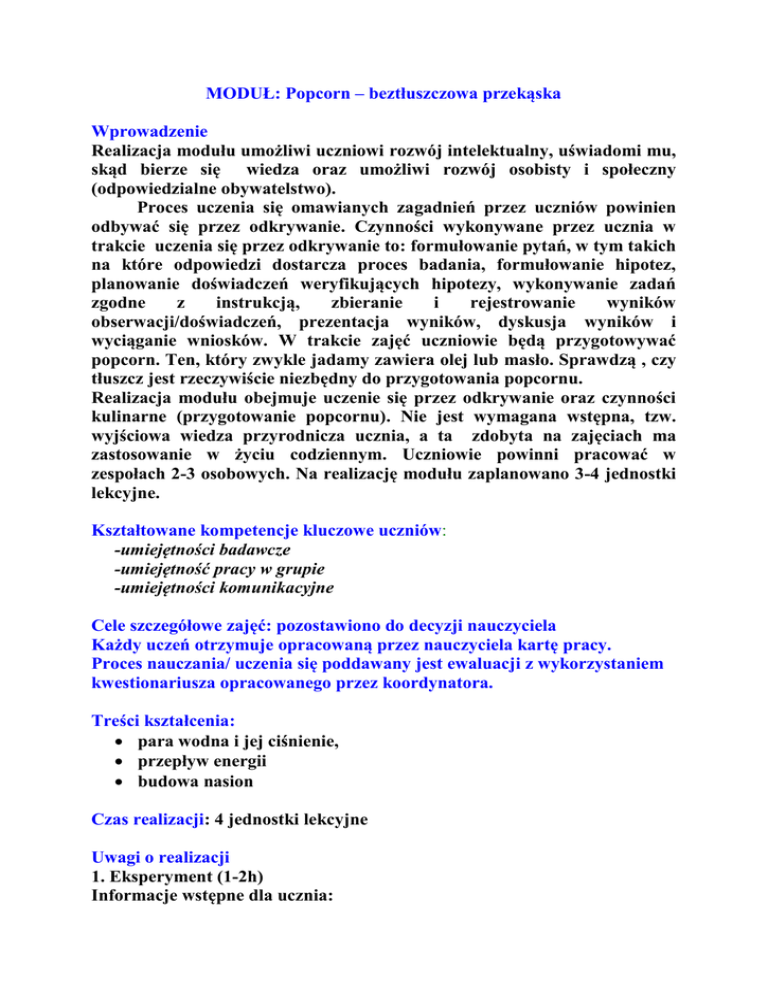 MODUŁ: Popcorn – beztłuszczowa przekąska