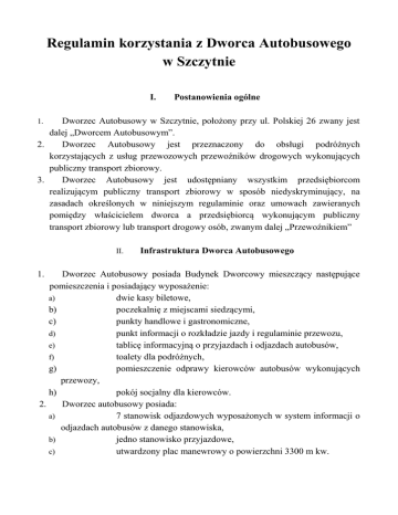 Regulamin korzystania z Dworca Autobusowego w - "Bus