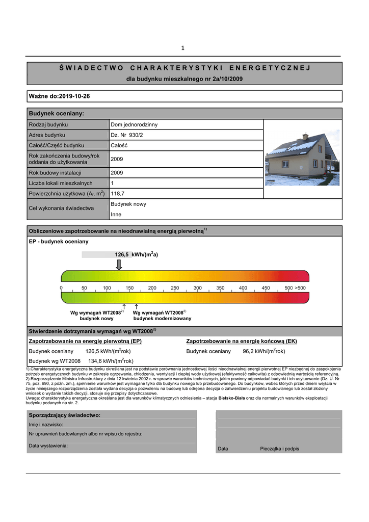 Certyfikat energetyczny Pakoszówka 26.10.2009r.x