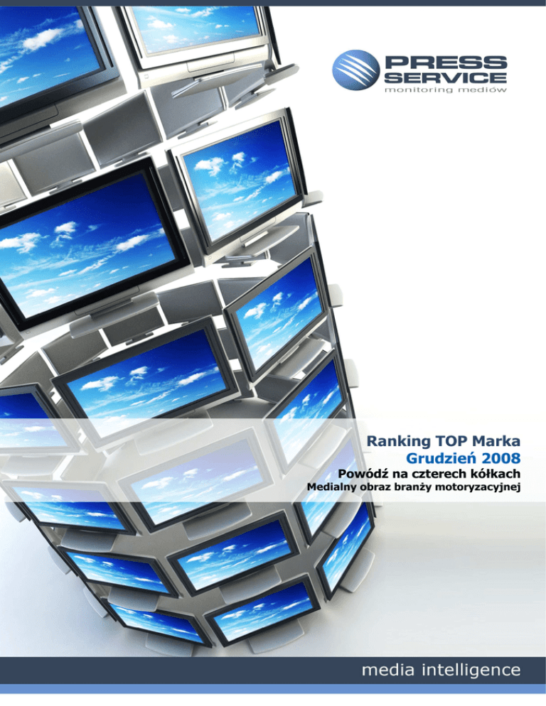 Ranking TOP Marka Grudzień 2008 Powódź na czterech kółkach Medialny obraz branży motoryzacyjnej Raport medialny Wstęp PRESS-SERVICE Monitoring Mediów wraz z wydawnictwem Press przeprowadził największe w Polsce badanie wizerunku firm w prasie na przestrzeni ostatniego roku! Ponad 300 tysięcy publikacji zawartych w ponad tysiącu tytułów prasowych dogłębnie przeanalizowanych przez naszych specjalistów zaowocowało kompleksowym raportem i opracowaniem rankingu Top Marki. Wyniki rankingu zostały opublikowane w specjalnym dodatku do grudniowego wydania miesięcznika Press. Poniżej część pełnego raportu dotycząca branży motoryzacyjnej. Jeżeli są Państwo zainteresowani szczegółowymi raportami dotyczącymi poszczególnych stacji i ich aktywności w danym miesiącu prosimy o kontakt z działem PR. Osoba do kontaktu: Krzysztof Skowronek PR/Marketing Manager [email protected] Tel: 061-66-20-05 wew. 128 Tel kom: 501-053-267 Strona 2 media intelligence Raport medialny Powódź na czterech kółkach Medialny obraz branży motoryzacyjnej Samochody to ładne przedmioty. Mało co wygląda w prasie tak dobrze jak zdjęcia moto-nowości. Nawet jeżeli producentów zaczyna nadżerać rdza. Branża motoryzacyjna pośród analizowanych segmentów rynku była zdecydowanie najliczniej reprezentowana. Owszem, pojawiały się na innych obszarach firmy, o których mówiło się jeszcze więcej, ale w żadnym wypadku sumy wszystkich podmiotów branży nie były do siebie tak zbliżone. Przepaść dzieląca liderów od maruderów była zwykle ogromna i sięgała nawet kilkusetprocentowej przewagi. W przypadku branży motoryzacyjnej interwały te są znacznie mniejsze, walka jest bardzo wyrównana. Produkt twarzą koncernu Co ciekawe, słabo widoczne są pozytywne informacje korporacyjne. Taki stan spowodowany jest z pewnością w jakiejś części przez kryzys finansowy i słabsze wyniki koncernów motoryzacyjnych (nie wspominając faktu, że w ostatnim czasie niektórzy potentaci zaczynają nie na żarty obawiać się o swą przyszłość). W tematach korporacyjnych łatwiej odnaleźć mimo wszystko więcej negatywów. Podstawową grupą tematyczną, która w największym stopniu wpłynęła na liczbę publikacji prasowych dotyczących koncernów działających w branży motoryzacyjnej, były opisy i prezentacje produktów. Materiały, które traktowały na ten temat najczęściej miały pozytywny wydźwięk. Samochody należą do bardzo fotogenicznych produktów, ich omówieniom niezwykle często towarzyszą efektowne zdjęcia i przyciągające wzrok tytuły. W tym obszarze wyróżnić możemy przynajmniej kilka form obecności medialnej. Często mamy do czynienia z osobną, obszerną prezentacją poszczególnych modeli. Równie łatwo jednak spotkać się możemy z porównaniami kilku samochodów pochodzących z jednego segmentu. Oferta pojawia się również w postaci specjalnie tworzonych rankingów. Te odnoszą się oczywiście do najróżniejszych cech auta – ekonomii, usterkowości, bezpieczeństwa, ceny itd. Żaden z modeli nie wyróżnił się szczególnie dużą ilością publikacji na przestrzeni całego roku, a czasowy wzrost zainteresowania danym modelem ze strony prasy, zauważalny był zwykle w przypadku pojawienia się na rynku nowej lub udoskonalonej wersji obecnego już na rynku samochodu. Bardzo często koncerny samochodowe pojawiają się w prasie w postaci zestawień cenowych. Są to materiały bardzo liczne, których liczba rośnie wraz w ilością promocji. Często prócz cen nowych modeli natrafić można także na zestawienia średnich cen proponowanych na rynku wtórnym. Inna forma obecności koncernów – pod tym względem również widoczne są ewidentne analogie przekazu – to wydarzenia i festyny. Czołówkę tych doniesień otwierają targi i prezentacje, które niezwykle skutecznie przyciągają uwagę dziennikarzy. Za nimi plasują się rajdy i festyny odbywające się na wolnym powietrzu. W tej kategorii mieszczą się również doniesienia na temat wozów tuningowanych, wyczynowych i sportowych. Wśród tego rodzaju wydarzeń jest również miejsce dla uroczystych premier określonych modeli. Strona 3 media intelligence Raport medialny Technologie i sport Kolejna grupa doniesień, która wspólna jest dla wszystkich producentów to materiały dotyczące rozwoju technologii. Systematycznie pojawiają się materiały w całości poświęcone nowym typom rozwiązań wprowadzanym w najróżniejszych systemach aut. Zazwyczaj też formy te skupiają się na rozwiązaniach proponowanych przez jednego producenta. W ostatnim czasie można zauważyć wzrost liczby materiałów, które duży akcent kładą na rozwiązania pro-ekologiczne. Stanowi to wyraźną odpowiedź na klimat medialny, który w ostatnim czasie mocno koncentruje się na zagadnieniach związanych z ekologią i wpływem człowieka na środowisko naturalne. Od tematu technologii bardzo krótka droga prowadzi do sfery sportowej a branża motoryzacyjna nierozerwalnie wiąże się ze sportami motorowymi. W przypadku BMW główną grupą tematyczną, dzięki której nazwa firmy często gościła w mediach, jest startujący w wyścigach Formuły 1, zespół BMW-Sauber. Na łamach prasy, w kontekście BMW, można było również przeczytać o sukcesach związanych ze startami w F1 polskiego „jedynaka” – Roberta Kubicy. Zawodnik ten „przyczynił się” do publikacji sporej liczby pozytywnych materiałów na temat teamu BMW. Miał on jednak również „swój udział” przy redagowaniu negatywnych treści. W mediach można było bowiem przeczytać materiały, w których Kubica nie pozostawiał suchej nitki na mechanikach, konstruktorach i inżynierach BMW, obwiniając ich za złe przygotowanie bolidu. Analogicznie, sport ten był znacznym źródłem wycinków również w przypadku Renault i Mercedes. Co koncerny mają za uszami? W przypadku Fiata na wizerunek firmy negatywnie wpłynęły pe