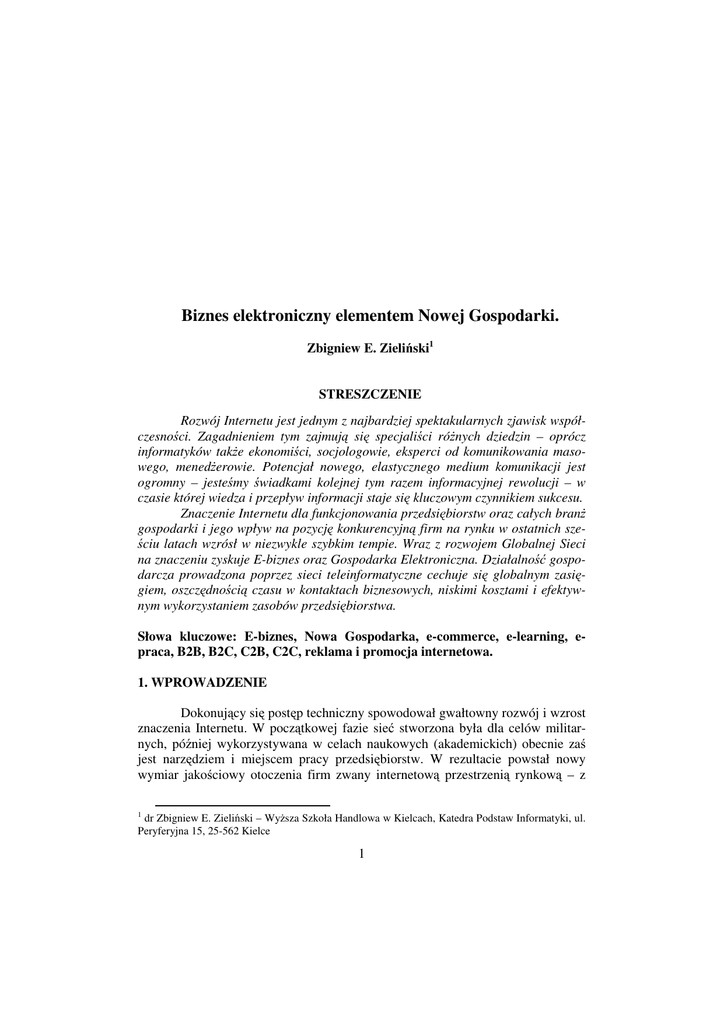 Biznes elektroniczny elementem Nowej Gospodarki.