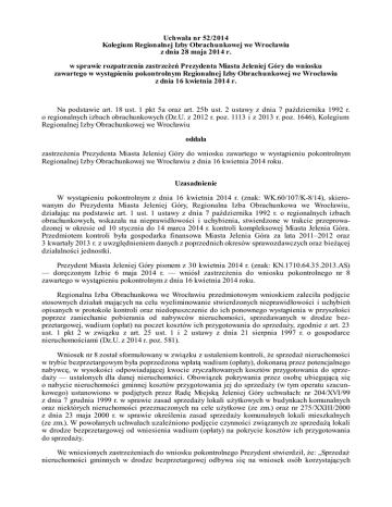 Uchwała nr 52/2014 Kolegium Regionalnej Izby Obrachunkowej we