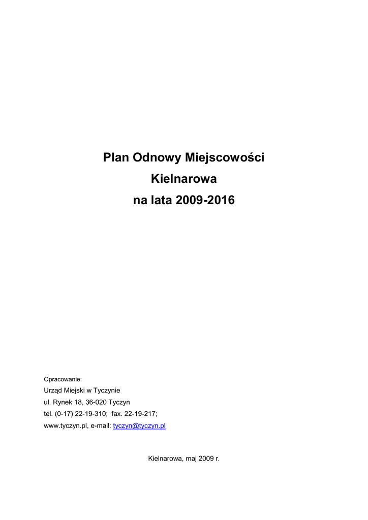 Plan Odnowy Miejscowości Kielnarowa na lata 2009-2016