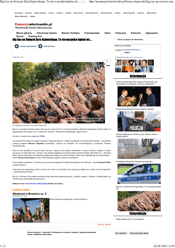 Big Cyc na Święcie Żuru Kujawskiego. To nie wszystko będzie też … | ... Baruchow o Bonie wo Miasto Włocławe k Brześć Kujawski Choce ń Chode cz Fabianki Gm ina Kow al http://promocjewloclawskie.pl/brzesc-kujawski/big-cyc-na-swiecie-zur... Gm ina Włocław ek Izbica Kujaw ska Lubanie Lubień Kujaw ski Lubraniec Miasto Kowal Region Strona główna Informacje lokalne Humor Katalog firm Biznes i Polityka Fotoreportaże Video Big Cyc na Święcie Żuru Kujawskiego. To nie wszystko będzie też … Dodaj ogłoszenie Polecamy Kulinaria Ogłoszenia Oferty mieszkań we Włocławku Znajdź nas na Facebooku Dodaj firmę promocjewloclawskie.pl Lubię to! 25 Maj, 2015 - 14:10 5 356 osób lubi obiekt promoc jewloclawskie.pl. 12 Share Informacje Wybory prezydenckie 2015: Wygrywa Andrzej Duda. Jak głosowaliśmy we Włocławku i powiecie włocławskim? Pogryzł policjanta! Miał na koncie niejedno włamanie Fot. Radosław Suchomski / promocjewloclawskie.pl Big Cyc to gwiazda polskiej estrady, która gra na scenie od 27 lat i tyle też mieszkańcy Brześcia Kujawskiego musieli czekać na taką gwiazdę, która pojawi się 27 czerwca br. podczas V Święta Żuru Kujawskiego i zagra koncert. Ustawa krajobrazowa wchodzi w życie. Reklamy znikną z naszych płotów? Jak było w zeszłym roku zobaczysz TUTAJ Za sprawą Pana pojawi się zespół w Brześciu Kujawskim Big Cyc i będzie występował na fantastycznym święcie – powiedziała podczas programu Marzena Rogalska prowadząca „Pytanie na śniadanie” do uczestniczącego w programie Tomasza Chymkowskiego. Pięć lat temu wpadliśmy na pomysł żeby stworzyć imprezę, która będzie utożsamiana z naszym miastem i będzie to miasto promować. Ta piąta tego typu impreza. Jest imprezą wyjątkową ponieważ przede wszystkim będzie zespół Big Cyc i Krzysztof Skiba. Wtedy też pierwszy raz będziemy podejmować próbę bicia rekordu Polski w ilości porcji ugotowanego żuru kujawskiego – mówił Tomasz Chymkowski w studiu TVP2 podczas programu „Pytanie na Śniadanie”. To jest wielkie wydarzenie, Ci ludzie się niesamowicie przygotowali, zbudowali specjalnie taki wielki gar – mówił Krzysztof Skiba z zespołu Big Cyc. Od jadącego Mercedesa odczepiła się przyczepa i … 3700 litrów żuru kujawskiego jeżeli to uda się nam zrobić to w przyszłym roku proponuję urządzić tam „regaty na żurze kujawskim” – żartował Krzysztof Skiba. Big Cyc na Święcie Żuru będzie promował swoją najnowszą piętnastą płytę pt. „Jesteśmy najlepsi”. Podczas V Święta pojawi się również znany kucharz Mariusz Gachewicz. Dołącz do nas na Facebooku kliknij [tutaj] dowiesz się więcej. Big Cyc na Święcie Żuru Kujawskiego. To nie wszystko będzie też … Zobacz także: Weekend w Brześciu cz. 5 22 Czerwiec, 2013 - 23:23 Zespół Weekend wystąpił dziś w Starym Brześciu. Fotorelacje Piknik Rodzinny ZS nr 3 we Włocławku Czytaj dalej Odpowiedz Strona korzysta z "ciasteczek" do logowania w serwisie, statystyk, lepszej personalizacji reklam i widżetów social media. 1 z3 Ok, rozumiem Chcę przeczytać więcej 26-05-2015 12:07 Big Cyc na Święcie Żuru Kujawskiego. To nie wszystko będzie też … | ... http://promocjewloclawskie.pl/brzesc-kujawski/big-cyc-na-swiecie-zur... 21 Maj, 2015 - 14:00 Tegoroczne Dni Festyn Integracyjny w ZSI we Włocławku Czytaj dalej Odpowiedz Ikona Disco Polo wystąpi w regionie 22 Maj, 2015 - 14:10 6 czerwca nas Otwarcie sezonu wioślarskiego 2015 na Przystani nad Wisłą we Włocławku Czytaj dalej Odpowiedz Dni Włocławka 2015 i Lato z Radiem już wkrótce we Włocławku 10 Kwiecień, 2015 - 14:10 Włocławek znalazł się na trasie Lata z Radi Przegląd Piosenki Harcerskiej i Turystycznej Choceń 2015 Czytaj dalej 1 odpowiedź Odpowiedz Majówka ZSA we Włocławku Lubię to! Liczba osób, które to lubią: 12. Zarejestruj się, aby zobaczy ć co lubią Twoi znajomi. Komentarze Nazwisko lub pseudonim Napisz komentarz * WIęcej WIęcej informacji informacji o o formatach for matach tekstu tekstu Znaczniki Znaczniki HTML HTML niedozwolone. niedozwolone. Znaki są automatycznie. Znaki końca końca linii linii ii akapitu akapitu dodawane dodawane są automatycznie. CAPTCHA Pytanie jest po to aby zabezpiec zyć portal przed spamem Przepisz kod z obr azka ** obrazka Wprowadź znaki, które na powyższym Zachowaj Wprowadź znaki, które widzisz widzisz na powyższym obrazku obrazku ii wciśnij wciśnij Zachowaj Zachowaj Dodając komentarz pamiętaj, że w Internecie nie jesteś anonimowy. Informuje my również, iż redakcja portalu promocjewlocla wskie.pl nie ponosi odpowiedzialności za treść zamieszczany ch komentarzy. Dodanie komentarza jest równoznaczne z akceptacją regulaminu portalu. » Kalendar z imprez Finał konkursu "Najlepszy uczeń w zawodzie" Koncert z okazji Dnia Matki we Włocławku Juwenalia Włocławek 2015 czwartek, 28 Maj, 2015 wtorek, 26 Maj, 2015 wtorek, 26 Maj, 2015 X Konkurs Piosenek z Repertuaru Maryli Rodowicz piątek, 29 Maj, 2015 Koncert dla Mamy w Radziejowie II Memoriał Czesława Wasielewskiego piątek, 29 Maj, 2015 sobota, 30 Maj, 2015 Mityng lekkoatletyczny "O Uśmiech Dziecka" we Włocławku sobota, 30 Maj, 2015 XXXVI Dni Otwartych Drzwi w Zarzeczewie sobota, 30 Maj, 2015 niedziela, 31 Maj, 2015 więcej więcej » Strona korzysta z "ciasteczek" do logowania w serwisie, statystyk, lepszej personalizacji reklam i widżetów social media. 2 z3 Ok, rozumiem Chcę przeczytać więcej 26-05-2015 12:07