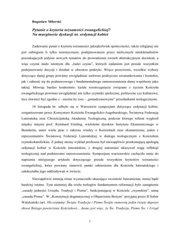 Pytanie o kryteria tożsamości ewangelickiej? Na