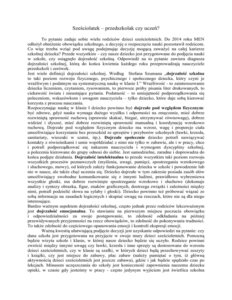 Szesciolatek - przedszkolak czy uczeń
