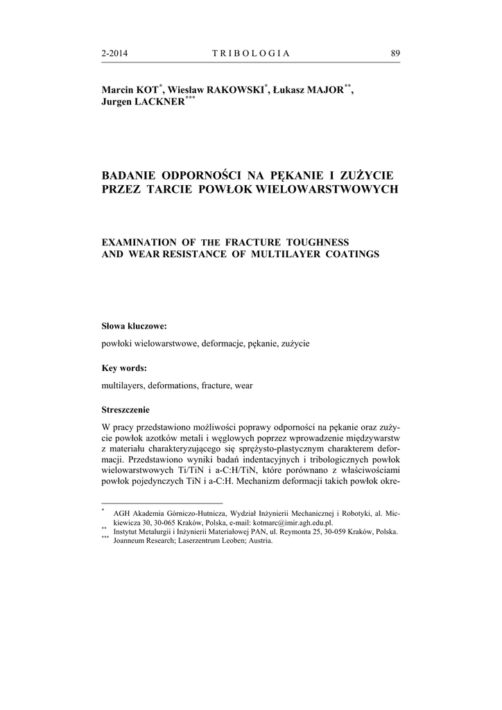 spis treści - TRIBOLOGIA