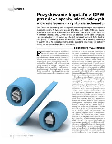 na parkiet. W październiku r. zadebiutował Dom Development z wartością oferty