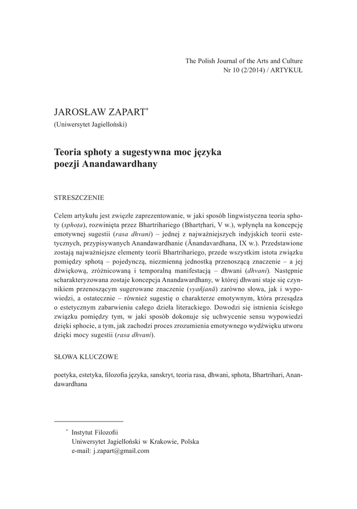 Jarosław Zapart, Teoria sphoty a sugestywna moc języka poezji