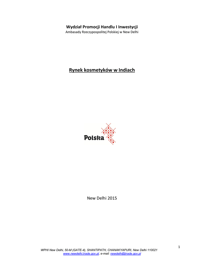 Wydział Promocji Handlu I Inwestycji Ambasady Rzeczypospolitej Polskiej w New Delhi Rynek kosmetyków w Indiach New Delhi 2015 WPHI New Delhi, 50-M (GATE-4), SHANTIPATH, CHANAKYAPURI, New Delhi 110021 www.newdelhi.trade.gov.pl, e-mail: [email protected] 1 Rynek kosmetyków w Indiach Już od jakiegoś czasu rynek kosmetyczny i produktów typu „beauty” w Indiach charakteryzuje się stałą tendencją zwyżkową. Według najnowszych danych wartość tego przemysłu szacowana jest na około 950 mld USD. Oczekuje się, iż do 2020 r. ma ona niemal potroić się i osiągnąć poziom 2,68 mld USD1. Ponadto szacunkowe dane dotyczące przedmiotowego sektora sugerują, iż roczne tempo wzrostu sprzedaży detalicznej produktów higieny osobistej waha się na poziomie od 15 do 20%, co plasuje Indie na pierwszym miejscu jeśli chodzi o tempo wzrostu popytu wewnętrznego. Popyt na kosmetyki jest dominującym elementem składowym segmentu produktów higieny osobistej i produktów typu „beauty”, rosnącym w tempie prawie 60% na przestrzeni ostatnich pięciu lat2. Podczas gdy poszczególne grupy produktowe, takie jak kremy przeciwzmarszczkowe, płyny do oczyszczania, toniki, kosmetyki do demakijażu, kremy do twarzy, itd. stanowią ważny element tego segmentu to jednak popyt na kremy wybielające – grupę produktową występującą praktycznie wyłącznie na subkontynencie indyjskim – rośnie ostatnimi laty w najszybszym tempie. Co więcej, na przestrzeni ostatniego pięciolecia rynek usług świadczonych przez salony kosmetyczne rósł w średnim tempie 35%. Jak można się spodziewać prawie 85% przychodów wypracowywanych przez ten segment branży kosmetycznej generują kobiety3. Indyjski rynek kosmetyczny zdominowany jest przez krajowe marki. Należąca do Unilever Group of Companies marka Lakmé posiada dominującą pozycję rynkową z 30% udziałem w indyjskim rynku kosmetycznym4. Lotus i Biotique to dwie kolejne główne marki kosmetyków obecne na rynku indyjskim. Obydwie należą do rodzimych producentów i spełniają wymagania popytu na produkty kosmetyczne oparte na składnikach naturalnych, wolne od chemikaliów i ajurwedyjskie. Cechą charakterystyczną krajowych marek kosmetycznych w Indiach jest cena. Wraz z rozwojem rodzimych producentów kosmetyków w Indiach w pierwszej połowie lat osiemdziesiątych XX wieku rynek nasycił się markami krajowymi w szczególności w najbardziej popularnych grupach produktowych takich jak szampony, odżywki, scruby do twarzy, itd. 1 ‘India’s cosmetics industry may treble by 2020’, The Times of India, December 24, 2013. Retrieved from: http://timesofindia.indiatimes.com/life-style/beauty/Indias-cosmetics-industry-may-treble-by2020/articleshow/27844855.cms 2 ‘Beauty Industry Scenario - India’, Industry Report. Retrieved from: http://www.cosmoprof.com/wpcontent/uploads/2013/11/www.cosmoprof.com/India_Beauty-Report.pdf 3 ‘Beauty Industry Scenario - India’, Industry Report. Retrieved from: http://www.cosmoprof.com/wpcontent/uploads/2013/11/www.cosmoprof.com/India_Beauty-Report.pdf 4 ‘The Rise of Color Bar’, Forbes India Magazine, January 15, 2014. Retrieved from: http://forbesindia.com/article/boardroom/the-rise-of-colorbar/36895/1 WPHI New Delhi, 50-M (GATE-4), SHANTIPATH, CHANAKYAPURI, New Delhi 110021 www.newdelhi.trade.gov.pl, e-mail: [email protected] 2 Jednym ze sposobów w jaki krajowi producenci usiłowali wzmocnić swoją pozycję rynkową w tych okolicznościach było pozycjonowanie swoich marek jako konkurencyjnych cenowo w stosunku do konkurujących produktów. Kolejną cechą charakterystyczną dla tej branży jest sprzedaż produktów w małych opakowaniach jednostkowych, np. w saszetkach. Trend ten pojawił się w odpowiedzi na zjawisko polegające na tym, że wydatki konsumenckie na produkty kosmetyczne w mniejszym miastach w Indiach (miastach należących do kategorii II i III, czyli o liczbie ludności odpowiednio pomiędzy 1-4 mln i 1 mln) były niższe niż w przypadku największych metropolii. Z drugiej strony na indyjskim rynku kosmetycznym obecne są praktycznie wszystkie główne międzynarodowe marki kosmetyków i produktów do higieny osobistej. Taki stan rzeczy jest efektem przede wszystkim coraz liczniejszej grupy młodych konsumentów zamieszkujących obszary miejskie, składającej się z osób które w coraz większym stopniu podlegają wpływom zachodnich mediów i zachodnich stylów życia, oraz rosnącemu poziomowi osobistych dochodów rozporządzalnych. Importowane lub międzynarodowe marki kosmetyczne odnotowują coroczne wzrosty sprzedaży w Indiach w miarę jak konsumenci odchodzą od kupowania kosmetyków mających spełniać tylko i wyłącznie zadanie polegające na zapewnieniu higieny osobistej, w zamian przestawiając się na zaawansowane produkty kosmetyczne, które dają konsumentom poczucie luksusu. Ponadto, wzrost liczebności mającej coraz wyższe aspiracje klasy średniej doprowadził do lepszej przywoływalności i rozpoznawalności międzynarodowych marek kosmetycznych z segmentu high-end. Indyjscy konsumenci coraz chętniej gotowi są zapłacić więcej aby w zamian otrzymać luksusowe produkty kosmetyczne, które kierowane są do osób ceniących kosmopolityczny i aspirujący do zachodniego styl życia. Tak więc różnice w poziomach cenowych i pozycjonowaniu występujące pomiędzy markami krajowymi a markami międzynarodowymi przyczyniły się do niewielkiego stopnia konkurowania pomiędzy tymi dwoma segmentami, tzn. produkty te są zwykle przeznaczone dla dwóch różnych docelowych grup konsumentów co przekłada się na niewielką rywalizację pomiędzy rodzimymi markami a markami światowych koncernów. Ponadto rozwój sieci różnego rodzaju placówek sprzedaży detalicznej, tj. sklepów detalicznych należących i zarządzanych przez tego samego przedsiębiorcę, punktów franczyzowych, multibrandowych drogerii, sklepów internetowych, itd., w szczególności zloka