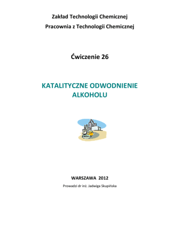 Zakład Technologii Chemicznej Pracownia z Technologii Chemicznej Ćwiczenie 26 KATALITYCZNE ODWODNIENIE ALKOHOLU WARSZAWA 2012 Prowadzi dr inż. Jadwiga Skupińska Ćwiczenie 26 KATALITYCZNE ODWADNIANIE ALKOHOLU Cel ćwiczenia. Celem ćwiczenia jest zapoznanie z procesem heterogenicznej katalizy oraz z metodami określania parametrów kinetycznych procesu takich jak: czas przebywania substratów w reaktorze, czas kontaktu, stopień przemiany i pozorna stała równowagi. Jako modelową wybrano do badań reakcję odwodnienia alkoholu wobec tlenku glinu jako katalizatora. Reakcja jest prowadzona w izotermicznym, przepływowym reaktorze z nieruchomą warstwą katalizatora. Jako metoda analizy produktów reakcji jest zastosowana chromatografia gazowa. Analizę prowadzi się na aparacie Hewllet-Packard GC 6890. Wprowadzenie do ćwiczenia. W ćwiczeniu badamy reakcję dehydratacji alkoholu (heksanol, cykloheksanol, heptanol, glikolbutylenowy-1,2) wobec tlenku glinu jako katalizatora. Reakcja jest prowadzona w sposób ciągły w izotermicznym reaktorze ze stałym złożem katalizatora. Alkohol w fazie gazowej przepływa z góry do dołu. Dla tego sposobu prowadzenia reakcji charakterystyczne jest, że gdy warunki reakcji ustabilizują się, stopień przemiany nie zmienia się w czasie. Zależy on od czasu przebywania substratu w reaktorze. Przez złoże katalizatora przepływa gaz jak pokazano na rysunku. Przebiega reakcja: RCH2CH2OH → RCH=CH2 + H2O R = C2, C3, C4 (1) Na wlocie do reaktora prędkość objętościowa alkoholu wynosi Wo [ml/h], a ilość moli alkoholu jest no. Zmiana molowości w równaniu (aA = bB + cC ) wynosi m = b + c – a w naszym przypadku 1. Na wylocie ilość moli alkoholu wynosi n. Stopień konwersji α = (no – n)/ no = (co- c)/ co (2) no = liczba mmoli alkoholu na wlocie do reaktora w jednostce czasu , n = liczba mmoli alkoholu na wylocie z reaktora w jednostce czasu szybkość reakcji (sumaryczna szybkość procesu heterogenicznego) wyrażamy prędkością zmian stężenia substratu: r = - dc/dτ = k*c (3) Czas przebywania w reaktorze τ można określić przez całkowanie tego równania. W wyniku całkowania Co dC r C τ= ∫ w założonych granicach otrzymamy zależność: τ = 1/k* ln Co/C (4) Reakcja dehydratacji alkoholu jest reakcją pierwszego rzędu przebiegającą ze zmianą molowości tzn. z jednej cząsteczki substratu powstają 2 cząsteczki produktów. Na wylocie reaktora mieszanina poreakcyjna składa się z n moli nieprzereagowanego alkoholu n = no(1α) oraz noα moli alkenu i noα moli wody. Suma moli w mieszaninie wychodzącej wynosi: no(1- α) + noα + noα = no(1+ α) (5) a stężenie alkoholu można przedstawić ułamkiem: no(1- α)/ no(1+ α) = (1- α)/ (1+ α) (6) Podstawiając do wzoru (4) wyrażenia na stężenie w strumieniu wychodzącym otrzymamy: τ = 1/k* ln (1 + α)/(1 - α) (7) Zależność (7) pozwala obliczyć średni czas przebywania reagentów w reaktorze konieczny dla uzyskania stopnia konwersji α. Czas przebywania w reaktorze można także obliczyć z równania (8): τ= Vk [ml] VO ml.s −1 [ ] (8) Vk = objętość katalizatora Vo = szybkość objętościowa substratu w jednostakch objętości na jednostkę czasu. Obliczony czas z równania (8) podstawiamy do równania (7) a znając stopień przemiany α możemy obliczyć pozorną stałą szybkości reakcji dehydratacji alkoholu – k*. Tak wyliczona pozorna stała szybkości jest funkcją stężenia centrów aktywnych na powierzchni katalizatora, adsorpcji substratów na powierzchni, desorpcji produktów z powierzchni katalizatora. Rzeczywista szybkość reakcji chemicznej na powierzchni kontaktu jest wyrażona równaniem: rrz = k c* cS (9) k - rzeczywista stała szybkości reakcji chemicznej na powierzchni katalizatora, c* - stężenie centrów aktywnych na powierzchni, cS – stężenie zaadsorbowanego substratu (alkoholu). Wydajność produktu Wp [%] obliczamy ze wzoru: Wp = n p [mmol / godz ]100% n pteor [mmol / godz ] = m p [ g / godz ]100% m pteor [ g / godz ] (10) np = liczba mmoli produktu (hetpen) npteor = teoretyczna liczba mmoli produktu, który powstanie gdy przereaguje cały substrat w jednostce czasu. W naszym przypadku npi = no mp = liczba gramów produktu w jednostce czasu mpteor = teoretyczna liczba gramów produktu, który powstanie gdy przereaguje cały substrat. Selektywność Sp = n p [mmol / godz ]100% ( no − n )[mmol / godz ] = n p [mmol / godz ]100% ( n s p )[mmol / godz ] (11) np = liczba mmoli (produktu) heptenu otrzymana w jednostce czasu no = liczba mmoli heptanolu na wlocie do reaktora w jednostce czasu , n = liczba mmoli heptanolu na wylocie z reaktora w jednostce czasu nsp = liczba mmoli przereagowanego (substratu) heptanolu w jednostce czasu Zestaw aparatury. Na schemacie przedstawiono zestaw aparatury dla ćwiczenia 26. Reakcja prowadzona jest w izotermicznym, reaktorze (1) z nieruchomym złożem katalizatora (2). Temperatura wewnątrz reaktora jest mierzona za pomocą termopary (3) i kontrolowana za pomocą programatora temperatury (4). Alkohol, np. heptanol jest dozowany do reaktora za pomocą strzykawki zamontowanej na pompie infuzyjnej (10). Produkty reakcji przechodząc przez chłodnicę (5) schładzają się i skraplają w odbieralniku (6). Wymrażalnik (8) wypełniony „suchym lodem” zapewnia wykroplenie resztek poreakcyjnych. Płuczki (9) wskazują czy przepływa gaz. Pompka powietrzna (12) pompuje powietrze na złoże katalizatora w czasie regeneracji tlenku glinu. Argon jest stosowany do przepłukania złoża katalizatora po reakcji. Schemat aparatury 1. 2. 3. 4. 5. 6. 7. Reaktor ZłoŜe katalizatora Termopara Programator temperatury Chłodnica wodna Odbieralnik Podnośnik 8. 9. 10. 11. 12. 13. 14. WymraŜalnik Płuczka Pompa infuzyjna Kran trójdroŜny Pompka powietrzna Balon z argonem Wykonanie ćwiczenia. 1. Zestaw aparatury jak na załączonym rysunku. 2. W reaktorze (1) znajduje się 10ml (8,2g) katalizatora Al2O3 (2). 3. Zw