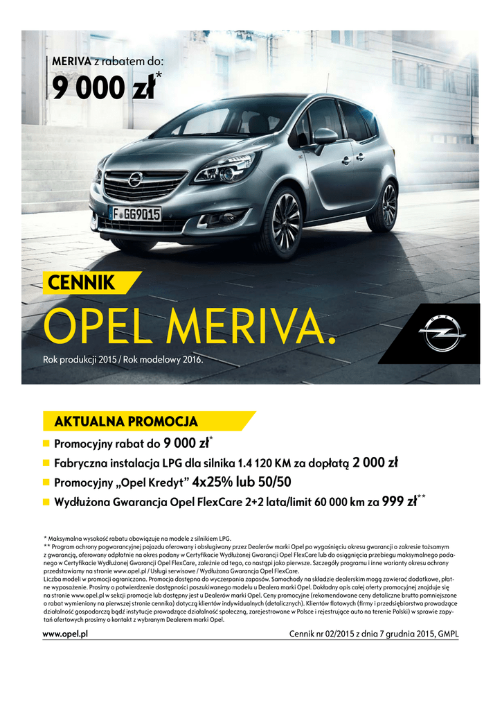 Opel Meriva cennik 2015 - Rok modelowy 2016