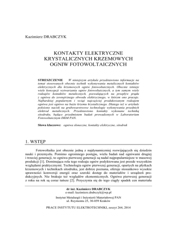 kontakty elektryczne krystalicznych krzemowych ogniw