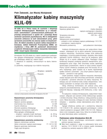 technika Piotr Żakowski, Jan Maciej Niciejewski Klimatyzator kabiny maszynisty KLIL-09 Od kilku lat w Polsce mamy do czynienia z ekspansją urządzeń klimatyzacyjnych. Montowane są w mieszkaniach, samochodach i pomieszczeniach publicznych. Poprawiają samopoczucie w upalne dni i pozwalają dłużej zachować sprawność psychofizyczną. Ma to niebagatelne znaczenie zwłaszcza na tych stanowiskach pracy, gdzie sprawność pracownika ma znaczny wpływ na bezpieczeństwo. Do takich zawodów na pewno należy maszynista lokomotywy. Zakład Elektroniki Przemysłowej ENIKA, we współpracy z firmą JMN 40, postanowił skonstruować urządzenie klimatyzacyjne kabiny maszynisty lokomotywy EP09 i innych typów lokomotyw. Klimatyzator KLIL-09 składa się z dwóch zasadniczych podzespołów: agregatu schładzającego i zasilającej go przetwornicy. Agregat schładzający składa się z dwóch części: 1) skraplacza ze sprężarką, umieszczonych na dachu lokomotywy; 2) parownika, znajdującego się w kabinie maszynisty. Schemat umiejscowienia elementów klimatyzatora KLIL-09 Najważniejsze parametry klimatyzatora Napięcie zasilania 110 V DC Napięcie zasilania agregatu 24 V DC Znamionowa moc chłodnicza 3,5 kW Czynnik chłodniczy R 134a Strumień powietrza chłodzącego maks. 550 m3/h Regulacja intensywności nadmuchu ręczna, 3 stopniowa Masa agregatu schładzającego – skraplacz i sprężarka (część dachowa) ok. 30 kg - parownik (część w kabinie maszynisty) ok. 25 kg Najważniejsze parametry przetwornicy Napięcie znamionowe zasilania Zakres zmienności napięcia wejściowego Napięcie wyjściowe znamionowe Ciągły prąd obciążenia 30 10/2005 110 V DC 77–137,5 V DC 24 V DC do 60 A Maksymalny prąd obciążenia Separacja galwaniczna 80 A między obwodem napięcia zasilającego a obwodem napięcia wyjściowego Temperatura otoczenia –30°C do +40°C Stopień ochrony IP54 Zabezpieczenie przed skutkami: – przepięć w sieci zasilającej napięcia pokładowego 110 V DC – przeciążenia i zwarcia wyjścia Mocowanie przetwornicy pod podwoziem lokomotywy Instalacja klimatyzacyjna włączana jest wyłącznikiem klawiszowym, znajdującym się na płycie parownika (umieszczonego w kabinie maszynisty). Uruchomiony zostaje silnik elektryczny napędzający, za pomocą paska klinowego, sprężarkę, która spręża zgazowany czynnik chłodniczy i tłoczy go do skraplacza, gdzie skrapla się on w wyniku oddawania ciepła. Powstające ciepło kondensacji skraplacz przekazuje powietrzu zewnętrznemu, przepływającemu przez niego. Dwie dmuchawy osiowe zapewniają wystarczające przewietrzanie, również w czasie postoju pojazdu. Płynny czynnik chłodniczy przepływa przez filtr-osuszacz do zaworu rozprężnego, gdzie rozpręża się w wyniku regulowanego spadku ciśnienia i przechodzi – przy silnym poborze ciepła w parowniku – ponownie w stan gazowy. Ciepłe powietrze, krążące w kabinie maszynisty lokomotywy, zostaje zasysane przez dwie dmuchawy promieniowe, schłodzone w parowniku i ponownie wtłoczone do kabiny maszynisty. Powstający przy tym kondensat wody zostaje odseparowany i skierowany przewodem na zewnątrz przez otwór odpływowy. Obieg chłodniczy kontrolowany jest podczas pracy przez wyłącznik przeciwoblodzeniowy i wyłącznik ciśnieniowy. Te dwa wyłączniki włączają i wyłączają silnik elektryczny, a więc i sprężarkę. Po wyłączeniu instalacji klimatyzacyjnej, wyłącznikiem klawiszowym, odłączane jest zasilanie silnika elektrycznego sprężarki i silników dmuchaw. Obieg chłodniczy i obieg powietrza są wyłączone. Woda deszczowa, wnikająca do części dachowej instalacji (skraplacz + sprężarka), zostaje odprowadzana przez otwór odwadniający. Agregat chłodniczy zasilany jest z przetwornicy statycznej 110 V DC/24 V DC, zasilanej napięciem pochodzącym z jednej z dwóch przetwornic wirujących 3000 V DC/110 V DC. Wykorzystano w tym rozwiązaniu zapas mocy, którą ma w każdym kierunku jazdy lokomotywy jedna z przetwornic. Podstawowe zalety klimatyzatora KLIL-09 Prostota montażu, umożliwiająca zamontowanie urządzenia podczas naprawy rewizyjnej. Mały koszt urządzenia z uwagi na zastosowanie taniej przetwornicy 110 V DC/24 V DC w miejsce zwykle stosowanej przetwornicy zasilanej napięciem 3000 V DC. technika Łatwość przystosowania układu zasilającego do innych typów lokomotyw ze względu na rozdzielenie części chłodzącej i zasilającej, co pozwala przy różnych napięciach pokładowych zmieniać jedynie przetwornicę oraz umieszczenie jej w różnych układach wolnej przestrzeni. Na uwagę zasługuje również fakt, że cały projekt powstał w Polsce, a jedynie niektóre komponenty urządzenia wymagały importu. Do dnia dzisiejszego eksploatowanych jest 9 klimatyzatorów w Zakładach Taboru PKP CARGO Warszawa i Kraków. Autorzy Piotr Żakowski – konstruktor Zakład Elektroniki Przemysłowej ENIKA 91-223 Łódź, ul. Morgowa 11 tel. +48 42 652 15 55, fax +48 42 652 16 11 [email protected] www.enika.pl Jan Maciej Niciejewski – właściciel JMN 40 03-808 Warszawa, ul. Mińska 25 tel. +48 22 81 00 699, fax +48 22 870 22 84 [email protected] Pragniemy podziękować wszystkim tym, którzy przyczynili się do wdrożenia projektu klimatyzatora KLIL-09, zwłaszcza pracownikom Wydziału Utrzymania Taboru Trakcyjnego PKP CARGO i ZNLE S.A. Gliwice. Zakład Elektroniki Przemysłowej ENIKA powstał w 1992 r. Przedmiotem działania jest projektowanie i produkcja urządzeń elektronicznych do taboru kolejowego, tramwajowego i trolejbusowego. Produkowane przez nas: przetwornice napięcia, falowniki, zasilacze o szerokiej gamie napięć wejściowych oraz wyjściowych i mocach do 300 kW, klimatyzatory do kabin prowadzących lokomotywy, tramwaje i trolejbusy, nagrzewnice pojazdowe, wyposażenie podstacji trakcyjnych, kompletne napędy asynchroniczne do tramwajów i trolejbusów wielokrotnie znalazły uznanie w oczach klientów i jurorów wielu ko