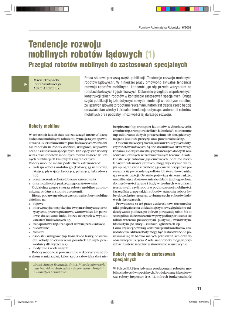 Tendencje rozwoju mobilnych robotów lądowych (1)