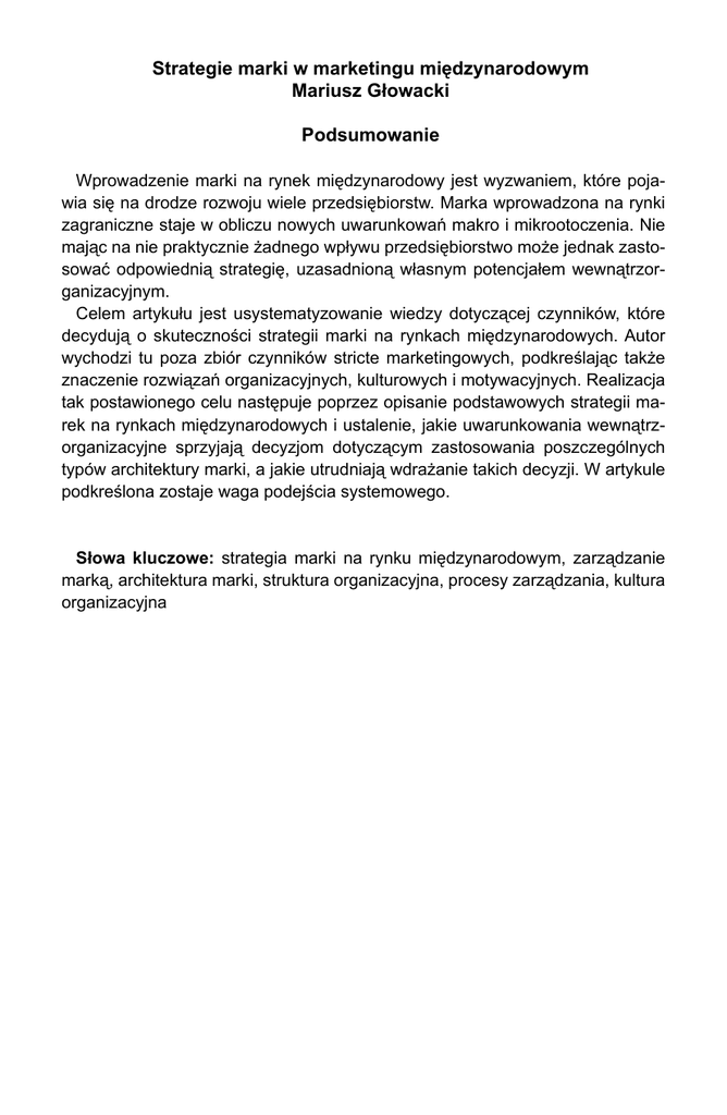 Strategie marki w marketingu międzynarodowym Mariusz Głowacki