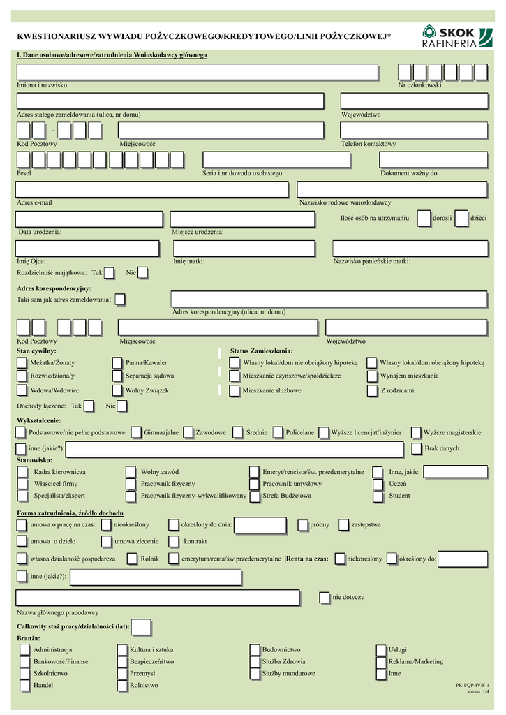 kwestionariusz wywiadu pożyczkowego/kredytowego/linii