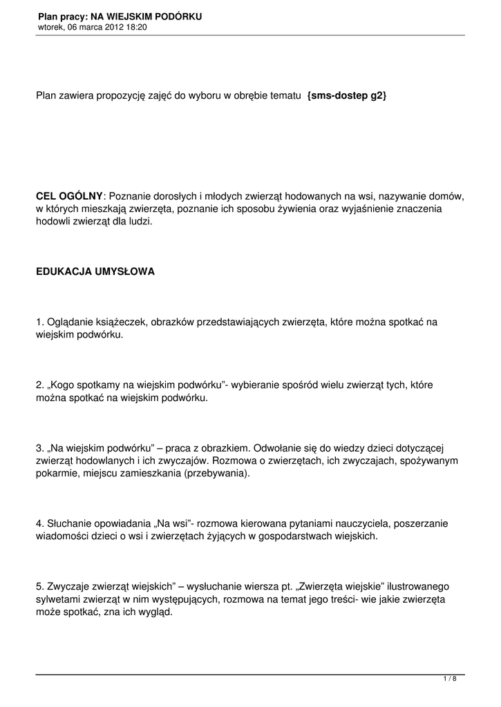 Plan zawiera propozycję zajęć do wyboru w obrębie tematu {sms-dostep g2}