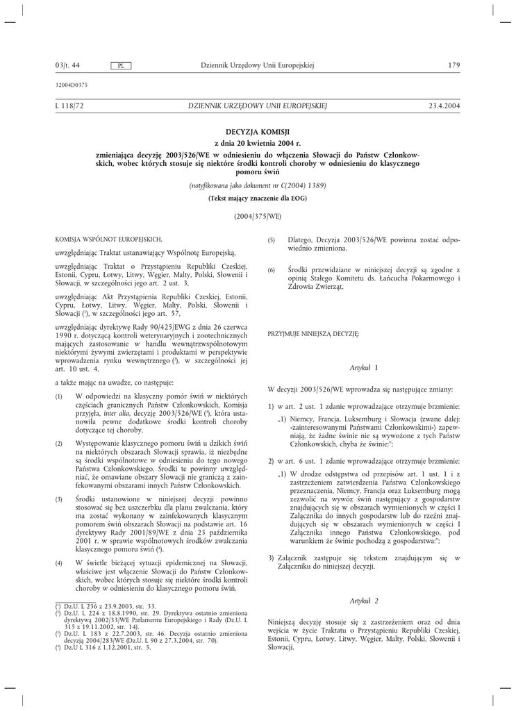 23.4.2004 L 118/72 DZIENNIK URZĘDOWY UNII EUROPEJSKIEJ