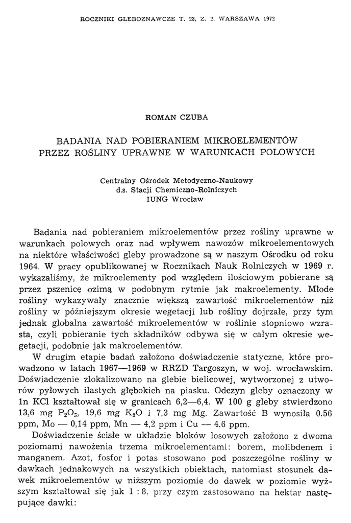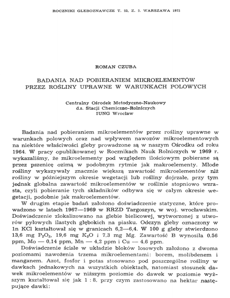 BADANIA NAD POBIERANIEM MIKROELEMENTÓW PRZEZ