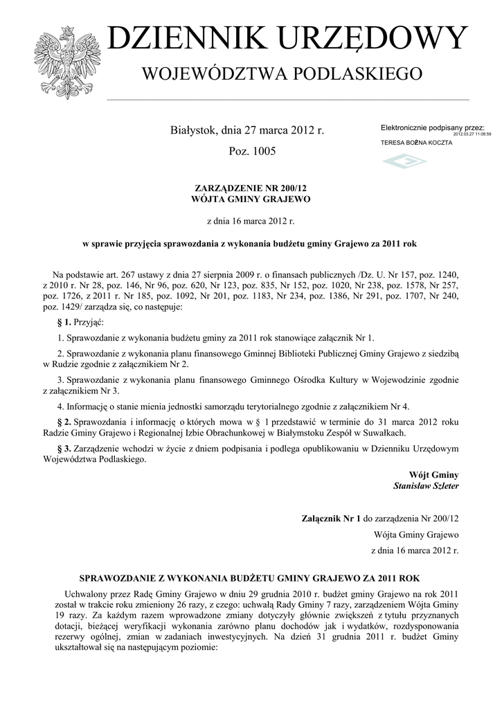 Zarz dzenie Nr 200/12 z dnia 16 marca 2012 r.