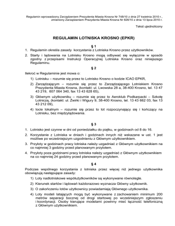 REGULAMIN LOTNISKA KROSNO (EPKR)