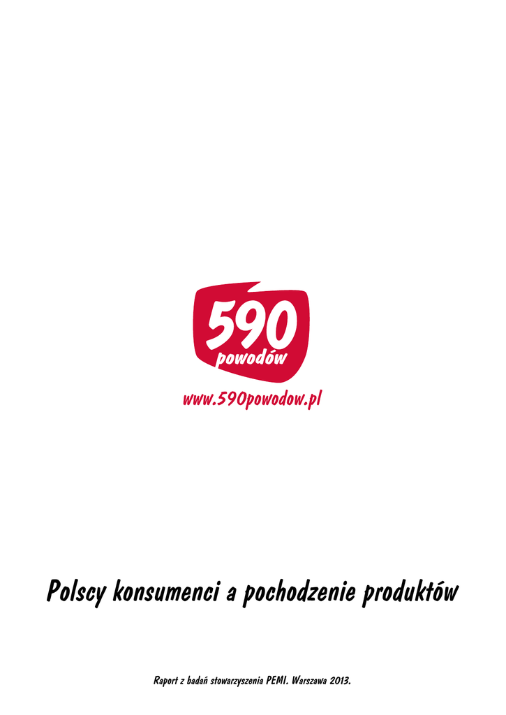 Polscy konsumenci a pochodzenie produktów Raport z badań stowarzyszenia PEMI. Warszawa 2013. Spis treści Wstęp����������������������������������������������������������������������������������������������������������������������������������� 3 1. Jak często sprawdzacie Państwo skład produktu na etykiecie?����������������������������������������� 4 2. J ak często sprawdzacie Państwo informację o kraju wytworzenia produktu umieszczoną na etykiecie?������������������������������������������������������������������������������������������������ 4 3. Skąd czerpiesz informacje na temat korzyści wynikających z kupowania polskich produktów?���������������������������������������������������������������� 5 4. J akie działania skłoniłyby Pana/Panią na zwrócenie uwagi na polskie produkty i ich zakup?����������������������������������������������������������������������������������������� 5 5. Które kryterium uważacie Państwo za najważniejsze w trakcie wyboru towaru przy półce sklepowej?������������������������������������������������������������������������������������������������������� 6 6. K tóre polskie produkty z wymienionych branż są Państwa zdaniem zwykle lub zawsze lepsze od zagranicznej konkurencji?����������������������������������������������������������������� 6 Wnioski��������������������������������������������������������������������������������������������������������������������������������� 7 Uwagi������������������������������������������������������������������������������������������������������������������������������������ 7 Raport z badań stowarzyszenia PEMI Warszawa 2013 Wstęp Szanowni Państwo, W roku 2012 opublikowaliśmy raporty z których wynika, że polscy przedsiębiorcy raczej nie są chętni do podkreślania rodzimego pochodzenia swoich produktów, podczas gdy niemal 50% konsumentów oczekuje od nich podkreślania pochodzenia sprzedawanych produktów. Z drugiej strony przebadaliśmy również konsumentów pod kątem sprawdzania przez nich informacji na opakowaniu, dotyczących kraju wytworzenia wyrobów. Blisko połowa z nas sprawdza zawsze lub prawie zawsze pochodzenie produktów. Po roku postanowiliśmy wrócić do badań. Ponownie przebadaliśmy konsumentów pod kątem ich nawyków podczas zakupów, a także oczekiwań odnośnie komunikacji polskości. Poniżej znajdą Państwa raport, który opracowaliśmy na bazie uzyskanych odpowiedzi. Zapraszamy do zapoznania się z nim. Stowarzyszenie PEMI Raport z badań stowarzyszenia PEMI Warszawa 2013 1. Jak często sprawdzacie Państwo skład produktu na etykiecie? W większości Polacy nie przykładają większej wagi do składu produktów. Etykiety, na których zawarte są tego typu informacje czyta zawsze lub często zaledwie 28% respondentów. Blisko 60% robi to okazyjnie, tylko w wyjątkowych sytuacjach. Świadczy to o tym, że nie mamy nawyku każdorazowego, dokładnego sprawdzania produktów pod kątem jego składu i przy wyborze produktu ważne są dla nas inne informacje takie jak opakowanie, cena, marka itp. 7% – Trudno powiedzieć 6% – Nigdy 13% – Zawsze 15% – Często 59% – Rzadko Rys. 1. Odpowiedzi na pytanie „Jak często sprawdzacie Państwo skład danego produktu na etykiecie?” (Badanie przeprowadzone przez Stowarzyszenie Pemi na potrzeby akcji 590 powodów; ankieta elektroniczna i telefoniczna; próba 1356). 2. Jak często sprawdzacie Państwo informację o kraju wytworzenia produktu umieszczoną na etykiecie? Dużo większą popularnością od składu produktu, umieszczonego na etykiecie, cieszy się informacja o kraju pochodzenia produktu. W sumie 62% respondentów sprawdza zawsze lub często, gdzie dany wyrób został wytworzony, przy zaledwie 13%, które robią to rzadko i 15%, które nigdy nie sprawdzają kraju pochodzenia. Informacje więc o kraju pochodzenia produktu są dla respondentów ważniejsze niż skład wyrobów. Odsetek osób, które sprawdzają kraj pochodzenia jest niezmienny od zeszłego roku i oscyluje na mniej więcej takim samym poziomie (2012 rok – 65%; 2013 rok – 62%). 10% – Trudno powiedzieć 15% – Nigdy 33% – Zawsze 13% – Rzadko 29% – Często Rys. 2. Odpowiedzi na pytanie „Jak często sprawdzacie Państwo informacje o kraju wytworzenia produktu umiesz