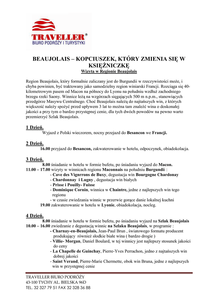 BEAUJOLAIS - Traveller - Biuro podróży i turystyki