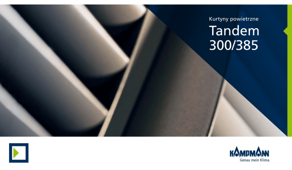Kurtyny powietrzne Tandem 300/385 Bezkonkurencyjne zalety Przegląd zalet Tandem Szczegóły Warianty regulacji Moce grzewcza Wymiary Korzyści dla klienta! Zapraszamy do środka! Jeden krok – i klienci znajdują się w przyjemnym salonie handlowym. Otwarte drzwi przełamują opór przed wejściem do lokalu. A dodatkowo kurtyna powietrzna Tandem obniża straty energii. Oszczędność energii cieplnej Kurtyny powietrzne Tandem działają z kurtyną wstępną i kurtyną ciepłego powietrza, zapewniając dzięki temu oszczędność energii sięgającą 38 procent. Kurtyna wstępna nie musi być podgrzewana, a niekorzystne z energetycznego punktu widzenia zawirowania powietrza występują głównie pomiędzy kurtyną wstępną a powietrzem na zewnątrz. Szybsza amortyzacja w porównaniu z konwencjonalnymi urządzeniami. Na przekór warunkom atmosferycznym Wyższa głębokość wnikania dzięki dwóm równoległym kurtynom powietrznym o różnych temperaturach zapewnia ochronę przed czynnikami atmosferycznymi w zimną i upalną porę roku. Bogata oferta Urządzenie poziome, sufitowe, do zabudowania czy z przedłużoną jednolitą zabudową – pomożemy Ci wybrać odpowiednie rozwiązanie. Za to odpowiedzialny jest serwis firmy Kampmann. Oczywiście możliwe są również zamówienia specjalne. Doskonała regulacja Łatwa regulacja za pośrednictwem przełącznika wielostopniowego lub komfortowo za pośrednictwem sterownika KaControl. Ponadto złącza do systemów automatyki budynku umożliwiają elastyczną integrację kurtyn powietrznych Tandem z systemem automatyki. Szybka dostawa Krótkie terminy dostaw gwarantują elastyczność i możliwość szybkiej realizacji zleceń: wszystkie urządzenia standardowe dostarczamy w możliwie najkrótszym czasie. Standardowe kurtyny Tandem dostarczane są już po upływie siedmiu dni od konsultacji technicznej. Możesz na nas polegać. W końcu Twoi klienci polegają na Tobie. %Obudowa &Klapa rewizyjna /Kierownica strumienia powietrza *Kratka wlotu powietrza " ! $ * # & !Osłony boczne "Zabezpieczenie przed przekręceniem #Wentylator promieniowy $Wysokowydajny wymiennik ciepła % / Przegląd zalet Tandem Wentylator promieniowy dwie grupy wentylatorów kurtyny wstępne j i kurtyny ciepłego powietrza (technologia Tandem) umieszczone jedna nad drugą regulacja 5-stopniowa Wysokowydajny wymiennik ciepła sprawdzone połączenie miedzi i aluminium Zabezpieczenie przed przekręceniem przyłącza ogrzewania zapobiega uszkodzeniu wymiennika ciepła przy wkręcaniu zaworów opcjonalnie: zawory (akcesoria) Warianty regulacji System automatyki pomieszczenia KaControl }technologia KaControl zintegrowana fabrycznie do tworzenia systemów połączonych w sieć na bazie KaControl }interfejsy do systemów automatyzacji budynków BACnet* lub Modbus jako opcjonalny podzespół wtykany }wejście analogowe 0-10 V do sterowania wentylatorem i zaworem poprzez jeden punkt danych }atrakcyjny panel pokojowy z intuicyjną obsługą }zintegrowany czasowy program przełączania *zintegrowany serwer sieciowy Przełącznik 5-stopniowy lato-zima* natynkowy }w połączeniu z termoelektrycznym zaworem odcinającym (akcesoria) }w obudowie z tworzywa sztucznego }kolor jasnoszary * oferowane też inne przełączniki wielostopniowe Moce grzewcza Tandem 300/385 Rozmiar Tandem 300 Maks. wysokość wylotu 1) Maks. szer. drzwi Przepływ powietrza 2) Moc grzewcza 3) Poziom ciśnienia akustycznego 4) [m] [m] [m³/h] [kW] [dB(A)] 10 2,7 - 3,4 1,0 840 - 1980 4,1 - 7,1 37 - 59 15 2,7 - 3,4 1,5 1260 - 2970 6,6 - 11,7 38 - 60 20 2,7 - 3,4 2,0 1680 - 3960 9,1 - 16,3 41 - 61 25 2,7 - 3,4 2,5 2520 - 5940 13,5 - 23,8 42 - 62 30 2,7 - 3,4 3,0 2590 - 6120 14,8 - 26,8 42 - 62 15 3,5 - 4,0 1,5 1890 - 4360 9,6 - 17,4 40 - 62 20 3,5 - 4,0 2,0 2460 - 5770 13,1 - 24,2 43 - 63 25 3,5 - 4,0 2,5 3370 - 8180 18,0 - 33,9 44 - 64 Tandem 385 przy korzystnych do średnich warunkach ciśnienia/wymogach/warunkach 2) przełączany 5-stopniowo 3) przy temp. wody grzewczej 75/65 °C, tL1 = 20 °C 4) w odległości 3 m 1) Wymiary A B C D [mm] [mm] [mm] [mm] 10 1000 880 300 845 15 1500 1380 300 845 20 2000 910 300 845 25 2500 1160 300 845 30 3000 1410 300 845 Rozmiar Tandem 300 A Tandem 385 1500 1380 385 985 20 2000 910 385 985 25 2500 1160 385 985 Tandem 300, przykładowy rozmiar 20 C 15 B B D Skorzystanie z usług firmy Kampmann zapewnia Ci szereg korzyści:: Korzyści dla klienta! doradztwo na miejscu wsparcie w projektowaniu dla wszystkich obiektów rozwiązania systemowe ustalenie wszystkich szczegółów obsługa posprzedażowa Jesteśmy do Twojej dyspozycji: Kampmann.pl/kontakt Kampmann.pl Kampmann GmbH Friedrich-Ebert-Str. 128 – 130 49811 Lingen (Ems) Niemcy T + 49 591 7108 -0 F + 49 591 7108 -300 E [email protected] W Kampmann.de KAMPMANN Polska Sp. z o.o. ul. Lotnicza 21f 99-100 Łęczyca Polska T +48 24 7219185 F +48 24 7219191 E [email protected] W Kampmann.pl