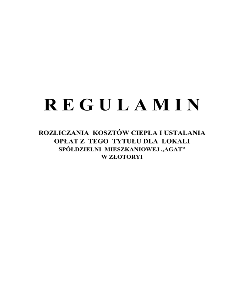 R E G U L A M I N - Spółdzielnia Mieszkaniowa AGAT w Złotoryi