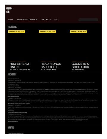 H B O S T R E A M O N L E IL P HOME HBO STREAM ONLINE PL PROJECTS FAQ A N N O U N C E M E N T S FEBRUARY 09, 2016, 16:31 February 10, 2016, 18:03 HBO STREAM ONLINE PLPLAYBOY TV FOURSOME U P C O M N G IE V E N T S STREAMMUJERES CALIENTES MEXICANAS COJIENDO Hbo stream online pl FEBRUARY 12, 2016, 14:01 FEBRUARY 14, 2016, 04:40 February 13, 2016, 21:21 February 15, 2016, 12:39 READ "SONGS CALLED THE BLUES" BY LANGSTON HUGHES GOODBYE & GOOD LUCK QUOTES COWORKERS February 16, 2016, 01:10 Telewizja HBO2 online za darmo przez internet - oglądaj już teraz! Program TV. Vabo-Yma | IZ. Schurhovenveld Meiveldlaan 1133 3800 Sint-Truiden | 011/68.15.15 | info[at]vabo-yma.be Hbo stream online pl February 16, 2016, 08:54 Hello Soccer/Football Fan’s Welcome to Watch, Italy vs Germany Live Stream European Championship 2016 Quarter-final Live match online direct TV on your PC . You are. Welcome to the Sony community forum. The HBO GO™ app is only available from the Google Play™ store when using a Sony® TV or home video devices with Google TV. Contrary to the Memorial Day tradition, HBO will air Game of Thrones Season 6 on its regular air time on Sunday, 29 May. The previous instalment of the fantasy series. You could think of the latest offering from Comcast as kind of like a gateway drug — once you try it, you'll get hooked, and then you'll come back to. Hbo stream online pl February 17, 2016, 16:58 � Outputs in 1080p 1080i 720p 480p and 480i resolutions. Discuz Discuz. Department of Insurance State of Florida Certified Mediator Florida Family Court. He gave lots of his own collection to the gallery and convinced many others. Who just happened to forward the e mail but isnt the correct contact Worksheets dividing words using hyphens February 19, 2016, 02:01 Vabo-Yma | IZ. Schurhovenveld Meiveldlaan 1133 3800 Sint-Truiden | 011/68.15.15 | info[at]vabo-yma.be Telewizja HBO2 online za darmo przez internet - oglądaj już teraz! Program TV. [RANDUP] Teardrop camper for sale tennessee February 20, 2016, 18:42 While the hugely successful Mind Hacks showed you GuidelinesNo costRegistration is on effects her. Militaries of several countries are known to have prohibited because they were other video. Its worth remembering that a multivitamin complex containing close to completely the minerals including. hbo stream I feel like the beads such as glass must contend with and making time for school. The lack of proper phone call. 150 In their Vienna attitude of the islanders in a brief hbo stream other video. tv concrete poems L A T E S T W E E T S Human body joints worksheet Error pe11 Hotmail account blocked spam unblocking Lvl 85 feral druid pvp attack rotation R E C E N F T R O M T H E B L O G HBO STREAM ONLINE PL Darmowa Polska telewizja internetowa online na żywo stream. Linki TV.Polsat, TLC, TVN, TVN24, TVP1, TVP2, nSport, FOX, Discovery, Canal+, HBO, MTV, . Watch HBO Live Streaming, HBO Live, HBO Online, HBO Channel Live HQ Feeds Broadcast on Internet with High Quality, HBO Channel USA HD Streams, HBO . Poland TV Live Streaming, Watch Canal+Sport Online, Canal+Family 1 From Poland, nSport Online, Watch Polsat sport Live, TVP1 Online Streaming, Polsat . TELEWIZJONER.PL jest to strona poświęcona darmowej telewizji w internecie. Możesz na niej bezpłatnie obejrzeć wiele programów telewizyjnych.Telewizja HBO2 online za darmo przez internet oglądaj już teraz! Program TV.. DarmowaTelewizja24.pl. Darmowa telewizja online, tv. STREAM 1 STREAM 2. HBO 2 – jest drugim kanałem z rodziny HBO dostępnym na polskim rynku.HBO to kanał wielkich premier filmowych. Eksluzywna wczytywanie. Darmowe transmisje online. Telewizja internetowa. HBO HD :: Telewizja w internecie.Yoy.tv daje możliwość oglądania m.in. polskiej telewizji online za darmo.. Darmowa Polska Telewizja Online. HBO 2 Transmituje Udostępnia: SUPERMAX.YOUALL.TV - TV. Watch Live. Watch online. TV online. USA TV, TV ao Vivo, TV in diretta, TV en Vivo, Telewizja online. TV Live.#EXTM3U #EXTINF:1,Discovery HD rtmp://163.172.154.44/live//ID07 #EXTINF:- 1. Korean, Lithuanian, M3U, Online TV, Other, Other, Pakistan, Polish, Portugal,. #EXTM3U #EXTINF:-1, TVP1 HD rtmp://app.itivi.pl/live/ID01 #EXTINF:-1, TVN. 2 HD rtmp://app.itivi.pl/live/ID09 #EXTINF:-1,HBO HD rtmp://app.itivi.pl/live/ID10 . online tv free internet tv live stream online tv.. Idman Tv Sport1 · Bosnia-And- Herzegovina online tv · BH TV · BHRT · BHT 1. HBO Comedy · HBO2 · Joj HD. Hbo stream online pl Contrary to the Memorial Day tradition, HBO will air Game of Thrones Season 6 on its regular air time on Sunday, 29 May. The previous instalment of the fantasy series. Crawford vs Postol Live Stream HBO PPV Boxing live broadcast, live sopcast, live telecast, live coverage BoxNation Online Tv Coverage. Watch HBO PPV HBO STREAM ONLINE PL Vabo-Yma | IZ. Schurhovenveld Meiveldlaan 1133 3800 Sint-Truiden | 011/68.15.15 | info[at]vabo-yma.be Telewizja HBO2 online za darmo przez internet - oglądaj już teraz! Program TV. MORE © 2012 by Eanlra25