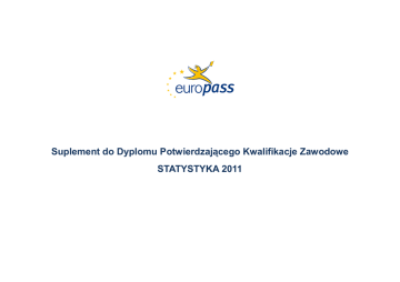 Suplement do Dyplomu Potwierdzającego Kwalifikacje Zawodowe STATYSTYKA 2011 2 Ilość wydanych suplementów wg województw – 2011 Województwo zachodniopomorskie wielkopolskie warmińsko-mazurskie świętokrzyskie śląskie pomorskie podlaskie podkarpackie opolskie mazowieckie małopolskie łódzkie lubuskie lubelskie kujawsko-pomorskie dolnośląskie OKE Ilość suplementów OKE Poznań 6 049 OKE Poznań 15 417 OKE Łomża 13 404 OKE Łódź 5 039 OKE Jaworzno 19 276 OKE Gdańsk 10 876 OKE Łomża 10 892 OKE Kraków 10 456 OKE Wrocław 4 308 OKE Warszawa 14 362 OKE Kraków 16 112 OKE Łódź 8 657 OKE Poznań 3 858 OKE Kraków 8 963 OKE Gdańsk 12 705 OKE Wrocław 9 893 suma 170 267 3 Ilość wydanych suplementów wg województw – 2011 dolnośląskie dolnośląskie; 9 893 kujawsko-pomorskie kujawsko-pomorskie; 12 705 lubelskie lubelskie; 8 963 lubuskie lubuskie; 3 858 łódzkie; 8 657 łódzkie małopolskie; 16 112 mazowieckie; 14 362 małopolskie mazowieckie opolskie; 4 308 opolskie podkarpackie; 10 456 podkarpackie podlaskie; 10 892 podlaskie pomorskie; 10 876 pomorskie śląskie; 19 276 świętokrzyskie; 5 039 warmińsko-mazurskie; 13 404 wielkopolskie; 15 417 zachodniopomorskie; 6 049 śląskie świętokrzyskie warmińsko-mazurskie wielkopolskie zachodniopomorskie 4 Ilość suplementów wydanych przez poszczególne OKE – 2011 OKE Wrocław Warszawa Poznań Łódż Łomża Kraków Jaworzno Gdańsk Ilość suplementów 14 201 14 362 25 324 13 696 24 296 35 531 19 276 23 581 5 Ilość suplementów wydanych przez poszczególne OKE – 2011 Gdańsk; 23 581 Jaworzno; 19 276 Kraków; 35 531 Gdańsk Jaworzno Kraków Łomża; 24 296 Łomża Łódż Łódż; 13 696 Poznań Poznań; 25 324 Warszawa Wrocław Warszawa; 14 362 Wrocław; 14 201 0 5 000 10 000 15 000 20 000 25 000 30 000 35 000 40 000 6 Liczba wydanych suplementów wg typu szkoły – 2011 Szkoła technikum policealna zasadnicza technikum uzupełniające OKE OKE OKE Gdańsk Jaworzno Kraków 9 829 7 264 5 600 888 9 033 6 642 3 206 395 17 667 9 336 8 082 446 OKE Łomża 11 116 8 026 4 880 274 OKE Łódź 6 705 3 887 2 874 230 OKE OKE OKE Ilość Poznań Warszawa Wrocław suplementów 11 954 6 933 6 011 426 5 986 4 698 3 317 361 6 234 4 603 3 172 192 78 524 51 389 37 142 3 212 7 Liczba wydanych suplementów wg typu szkoły – 2011 technikum uzupełniające; 3 212 zasadnicza; 37 142 1 policealna; 51 389 technikum ; 78 524 0 10 000 20 000 30 000 40 000 technikum uzupełniające 50 000 zasadnicza 60 000 policealna 70 000 80 000 90 000 technikum 8 Liczba wydanych suplementów wg typu szkoły w poszczególnych OKE – 2011 20 000 17 667 18 000 16 000 14 000 11 954 12 000 10 000 8 000 6 000 11 116 9 829 8 082 7 264 8 026 6 933 6 011 6 705 6 642 5 600 4 698 3 887 3 206 888 446 OKE Jaworzno OKE Kraków 274 230 4 603 3 317 2 874 395 6 234 5 986 4 880 4 000 2 000 9 336 9 033 426 361 3 172 192 0 OKE Gdańsk technikum OKE Łomża policealna OKE Łódź zasadnicza OKE Poznań OKE Warszawa OKE Wrocław technikum uzupełniające 9 Ilość wydanych suplementów wg zawodów – 2011 Nazwa dyplomu technik informatyk technik ekonomista sprzedawca kucharz małej gastronomii technik mechanik technik usług kosmetycznych technik hotelarstwa technik żywienia i gospodarstwa domowego technik administracji technik budownictwa technik usług fryzjerskich technik bezpieczeństwa i higieny pracy technik farmaceutyczny mechanik pojazdów samochodowych technik handlowiec technik organizacji usług gastronomicznych opiekun medyczny technik logistyk technik rolnik technik elektronik kucharz ratownik medyczny technik masażysta technik architektury krajobrazu technik agrobiznesu technik mechatronik technik ochrony fizycznej osób i mienia asystentka stomatologiczna technolog robót wykończeniowych w budownictwie ślusarz technik elektryk murarz technik górnictwa podziemnego technik ochrony środowiska Ilość wydanych suplementów 11 905 9 721 9 278 8 641 7 666 7 199 6 834 6 626 6 438 5 974 4 274 4 033 3 933 3 663 3 605 3 383 3 216 3 213 3 196 2 896 2 408 2 346 2 009 1 957 1 773 1 706 1 632 1 547 1 484 1 461 1 347 1 310 1 197 1 154 10 elektromechanik pojazdów samochodowych technik mechanizacji rolnictwa mechanik-operator pojazdów i maszyn rolniczych kelner technik geodeta technik pojazdów samochodowych fryzjer technik rachunkowości opiekun w domu pomocy społecznej operator obrabiarek skrawających technik teleinformatyk technik leśnik technik prac biurowych technik organizacji reklamy stolarz technik drogownictwa elektryk technik technologii żywności monter instalacji i urządzeń sanitarnych rolnik cukiernik technik weterynarii asystent osoby niepełnosprawnej posadzkarz technik dentystyczny fototechnik technik pożarnictwa terapeuta zajęciowy technik obsługi turystycznej monter elektronik mechanik-monter maszyn i urządzeń higienistka stomatologiczna technik technologii drewna elektromechanik technik technologii odzieży technik analityk technik spedytor technik poligraf opiekunka dziecięca technik elektroradiolog technik ogrodnik 1 121 1 081 1 063 1 002 941 921 916 874 857 836 801 792 783 760 737 701 672 660 651 608 587 582 560 549 541 513 469 447 444 436 430 427 427 420 418 406 385 314 309 296 293 11 malarz-tapeciarz technik hodowca koni technik optyk technik urządzeń sanitarnych monter mechatronik górnik eksploatacji podziemnej piekarz pracownik pomocniczy obsługi hotelowej technik usług pocztowych i telekomunikacyjnych ogrodnik krawiec opiekunka środowiskowa asystent operatora dźwięku technik telekomunikacji dietetyk betoniarz-zbrojarz blacharz samochodowy lakiernik protetyk słuchu florysta technik technologii chemicznej technik mechanik lotniczy rzeźnik-wędliniarz mechanik precyzyjny technik inżynierii środowiska i melioracji technik ortopeda technik nawigator morski cieśla drukarz introligator tapicer technik mechanik okrętowy monter izolacji budowlanych technik pszczelarz technik żeglugi śródlądowej fotograf blacharz d
