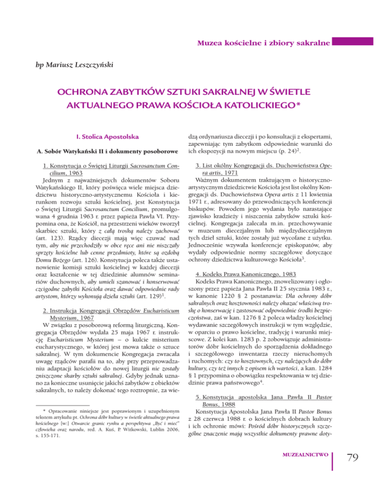 OCHRONA ZABYTKÓW SZTUKI SAKRALNEJ W ŚWIETLE