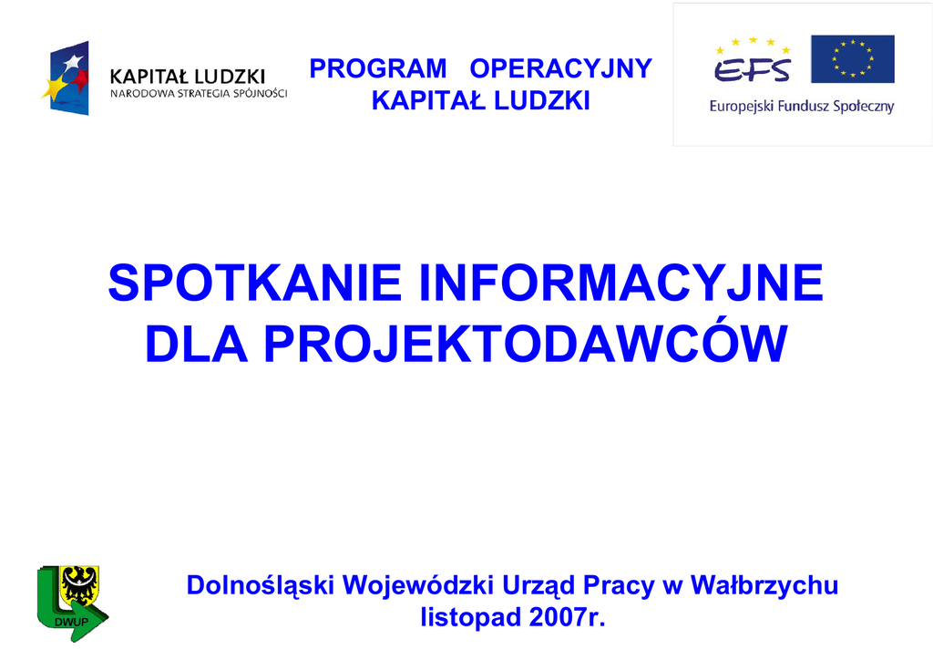 PROGRAM OPERACYJNY KAPITAŁ LUDZKI Prezentacja