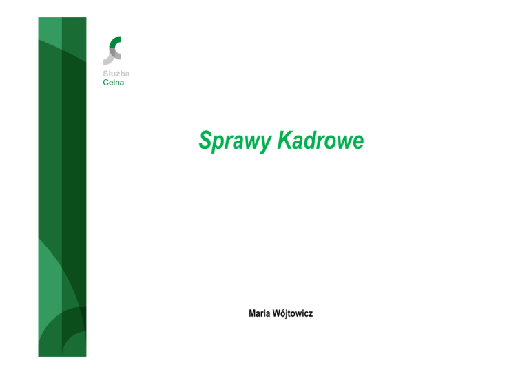 Sprawy Kadrowe Maria Wójtowicz sprawy kadrowe - wzrost uposażeń Podwyżki 2016 r. ok. 5,5 % od funduszu środki na podwyżki . grupa zatrudnionych funkcjonariusze S.C. izby celne etaty uposażeń przec/etat przec/etat uposażenie/ pozostałych funkcjonariu należności wynagrodzenie sze z bez 3%, (fundusz nagród, pozostałymi nagrody jubil. nagród jubil. i należn. odpraw Odprawy 14 221 46 602 000 2 402 000 273,08 287,16 246 1 233 000 58 000 417,68 437,33 14 467 47 835 000 2 460 000 275,54 289,71 Służba cywilna IC 816 2 981 000 288,60 304,43 niemnożnikowi (obsługa) 243 512 000 167,68 175,58 funkcjonariusze S.C. MF Razem funkcjonariusze S.C. 51 328 000 sprawy kadrowe - wzrost uposażeń 1)wzrost dodatku za posiadany stopień, 2)podwyższenie mnożników uposażenia zasadniczego, 3)indywidualna regulacja uposażeń. sprawy kadrowe - wzrost uposażeń Wariant I Średnia kwota na podwyżkę dodatku za stopień służbowy 270,00 . Miesięczna kwota na podwyższenie dodatki za stopień służbowy 3 839 670,00 Kwota nierozdysponowana 43 830,00 Nierozdysponowana średnia miesięczna kwota na wakat 3,08 ( służbę) w tym dodatek za wieloletnią sprawy kadrowe - wzrost uposażeń I wariant - wzrost o 270 zł Stopień służbowy . Generał Służby Celnej Nadinspektor celny Inspektor celny Młodszy inspektor celny Podinspektor celny Nadkomisarz celny Komisarz celny Podkomisarz celny Starszy aspirant celny Aspirant celny Młodszy aspirant celny Starszy rachmistrz celny Rachmistrz celny Młodszy rachmistrz celny Starszy rewident celny Rewident celny Młodszy rewident celny Starszy aplikant celny Aplikant celny Mnożnik kwoty bazowej Kwota dodatku 0,916 0,809 0,756 0,729 0,702 0,649 0,622 0,596 0,542 0,515 0,489 0,462 0,435 0,409 0,382 0,355 0,329 0,302 0,206 1 716,50 1 516,00 1 416,70 1 366,10 1 315,50 1 216,20 1 165,60 1 116,90 1 015,70 965,10 916,40 865,80 815,20 766,50 715,90 665,30 616,50 565,90 386,10/ 460 sprawy kadrowe - wzrost uposażeń Wariant II Średnia kwota na podwyżkę dodatku za stopień służbowy 200,50 Miesięczna kwota na podwyższenie dodatki za stopień służbowy 2 851 310,50 Kwota nierozdysponowana 1 032 189,50 . Nierozdysponowana średnia miesięczna kwota na wakat 72,58 ( w tym dodatek za wieloletnią służbę) Wariant III Średnia kwota na podwyżkę dodatku za stopień służbowy 150,00 Miesięczna kwota na podwyższenie dodatki za stopień służbowy 2 133 150,00 Kwota nierozdysponowana 1 750 350,00 Nierozdysponowana średnia miesięczna kwota na wakat 123,08 ( w tym dodatek za wieloletnią służbę) sprawy kadrowe - wzrost uposażeń 2)podwyższenie mnożników uposażenia zasadniczego, sprawy kadrowe - wzrost uposażeń Ilość funkcjonariuszy których uposażenie zasadnicze przekracza kwotę uposażenia zasadniczego okreslonego mnożnikiem na jego stanowisku o kwotę: Izba Celna do 100 zł 100-120 zł 121-140 zł 141-160 zł 161-180 zł 181-200 zł powyżej 200 zł Stan zatrudnienia na 31.07.2015 r. w osobach Razem % udział Biała Podlaska 105 6 8 7 3 2 79 210 1 803 11,65% Białystok 221 12 9 12 1 1 53 309 1 050 29,43% Gdynia 194 10 2 6 2 10 68 292 980 29,80% Katowice 99 3 2 4 4 1 214 327 1 102 29,67% Kielce 21 0 1 1 0 1 0 24 162 14,81% . Łódź 98 8 4 18 1 4 25 158 707 22,35% 92 4 0 0 1 2 63 162 582 27,84% Opole 44 2 0 0 1 0 27 74 216 34,26% Olsztyn 88 5 3 3 4 0 55 158 858 18,41% Poznań 79 0 2 2 0 1 91 175 895 19,55% 152 8 0 5 0 0 61 226 1 204 18,77% Rzepin 14 1 35 5 0 1 91 147 578 25,43% Szczecin 18 1 2 0 23 22 247 313 798 39,22% Toruń 11 5 5 0 0 1 53 75 440 17,05% Warszawa 302 19 7 14 3 5 191 541 1 663 32,53% Wrocław 138 7 2 44 5 1 78 275 799 34,42% 1 676 91 82 121 48 52 1 396 3 466 13 837 25,05% Kraków Przemyśl Razem Co najmniej 1319 – max. na stanowisku sprawy kadrowe - wzrost uposażeń Wersja I - wzrost kwoty uposażenia zasadniczego średnio o 204 zł Grupa uposażenia zasadniczego Mnożnik kwoty bazowej Kwota uposażenia zasadniczego XXVIII XXVII XXVI XXV XXIV XXIII XXII XXI XX XIX XVIII XVII XVI XV XIV XIII XII XI X IX VIII VII VI V IV III II I 4,806 4,539 4,164 3,738 3,364 3,097 2,937 2,830 2,723 2,590 2,510 2,430 2,323 2,243 2,163 2,083 1,976 1,923 1,870 1,816 1,736 1,683 1,630 1,577 1,523 1,443 1,390 1,336 9 005,70 8 505,40 7 802,70 7 004,50 6 303,60 5 803,30 5 503,50 5 303,00 5 102,50 4 853,30 4 703,40 4 553,50 4 353,00 4 203,10 4 053,20 3 903,30 3 702,80 3 603,40 3 504,10 3 402,90 3 253,00 3 153,70 3 054,40 2 955,10 2 853,90 2 704,00 2 604,70 2 503,50 1396 osób bez podwyżek sprawy kadrowe - wzrost uposażeń Wersja II - wzrost kwoty uposażenia zasadniczego średnio o 92 zł Grupa uposażenia zasadniczego Mnożnik kwoty bazowej Kwota uposażenia zasadniczego XXVIII XXVII XXVI XXV XXIV XXIII XXII XXI XX XIX XVIII XVII XVI XV XIV XIII XII XI X IX VIII VII VI V IV III II I 4,746 4,479 4,104 3,678 3,304 3,037 2,877 2,770 2,663 2,530 2,450 2,370 2,263 2,183 2,103 2,023 1,916 1,863 1,810 1,756 1,676 1,623 1,570 1,517 1,463 1,383 1,330 1,276 8 893,30 8 393,00 7 690,30 6 892,00 6 191,20 5 690,90 5 391,10 5 190,60 4 990,10 4 740,90 4 591,00 4 441,10 4 240,50 4 090,60 3 940,70 3 790,80 3 590,30 3 491,00 3 391,70 3 290,50 3 140,60 3 041,30 2 942,00 2 842,70 2 741,50 2 591,60 2 492,30 2 391,10 1790 osób bez podwyżek sprawy kadrowe - wzrost uposażeń 3) indywidualna regulacja uposażeń 3466 – powyżej mnożnika DZIĘKUJĘ ZA UWAGĘ